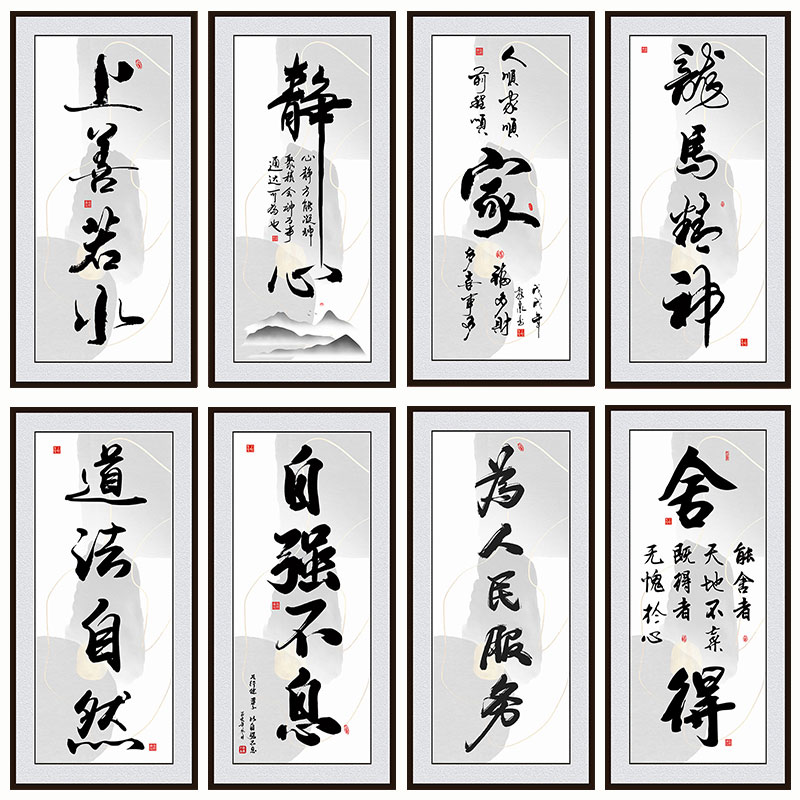 励志书法字画贴画墙纸自粘画客厅装饰业精于…