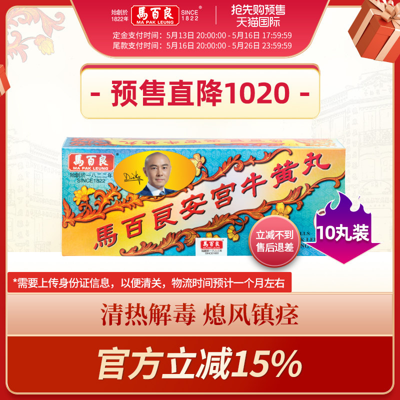 天猫马百良海外旗舰店,香港马百良安宫牛黄丸安宫丸马百良人官方正品清热解毒丸10丸/盒P,孝敬父母优选 改善三高