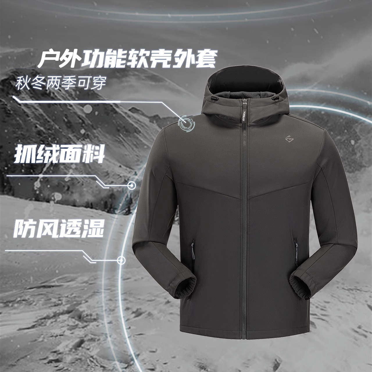 天猫奥赛德户外专营店,探路者防风防泼水软壳衣男,防风御寒 防泼水面料 锁温保暖