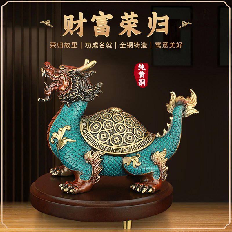天猫礼尚往来旗舰店,铜龙龟摆件纯手工铸造工艺礼品,黄铜材质,纯手工铸造,赠送底座