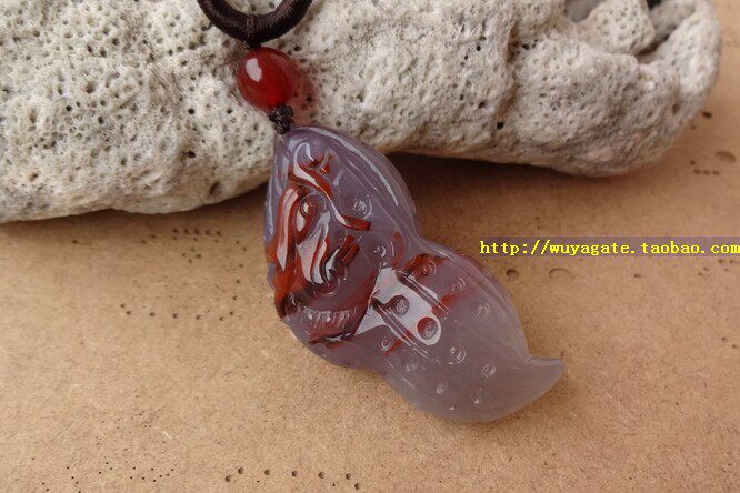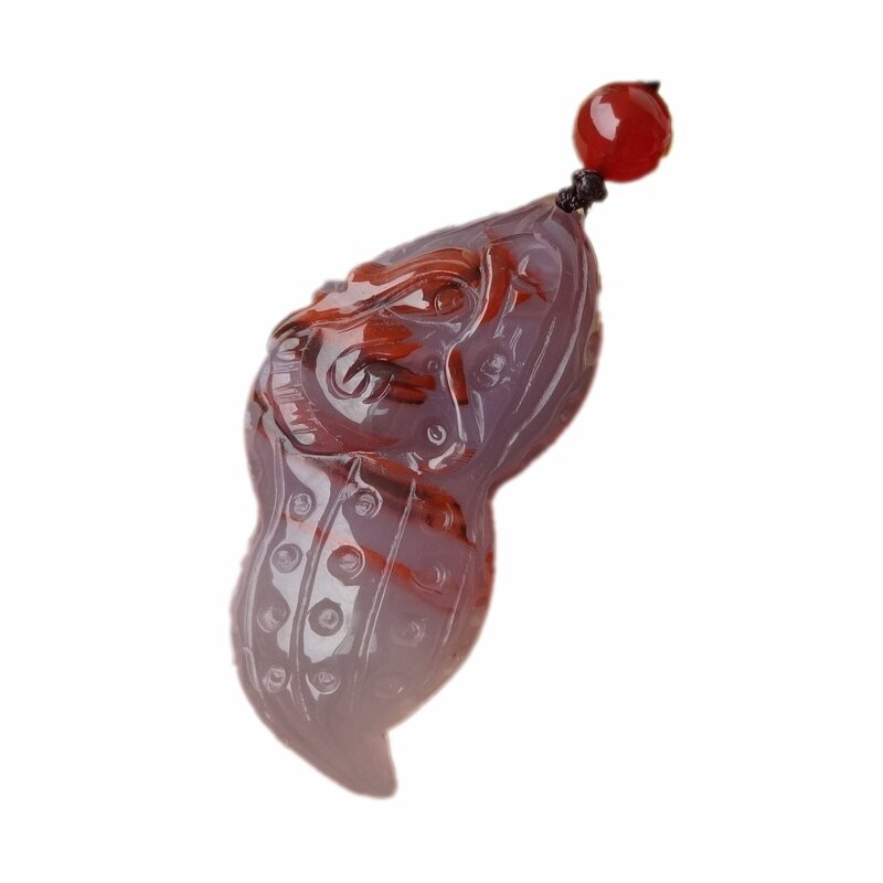 巴西原色无烧纯天然灰紫俏色玛瑙玉髓吊坠男女俏雕花生龙复古挂件