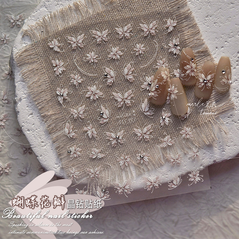 tomoni蝴蝶花瓣美甲贴纸网红花朵仙气镶钻高级感手绘指甲装饰贴花