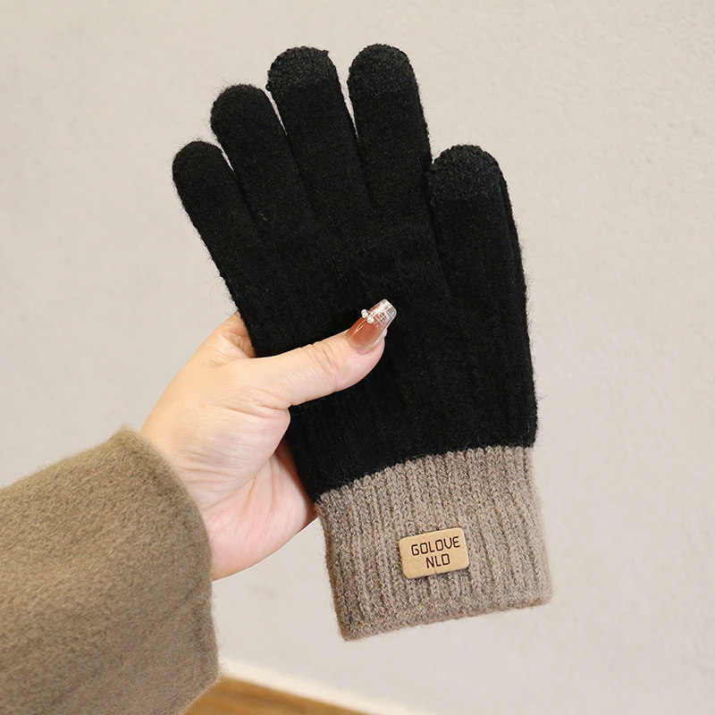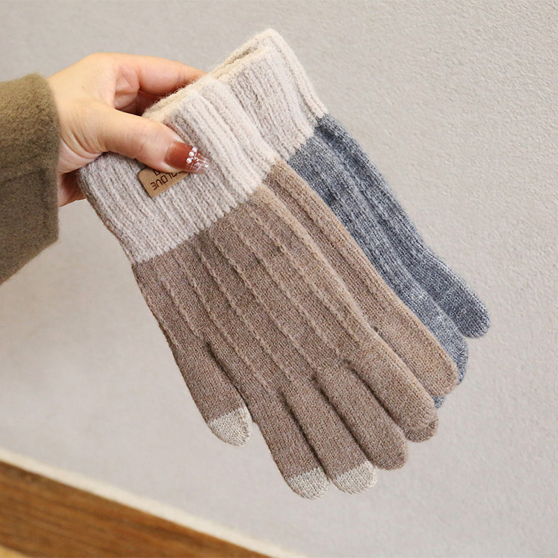 保暖手套学生秋冬季加厚外出骑车全指针织毛线可爱女士全指羊驼绒