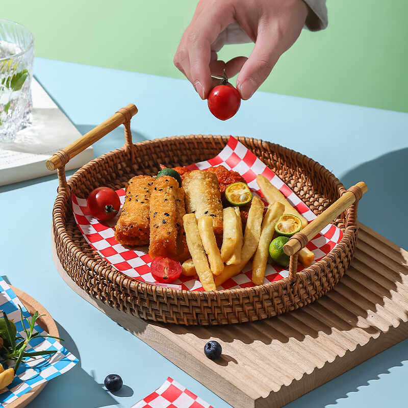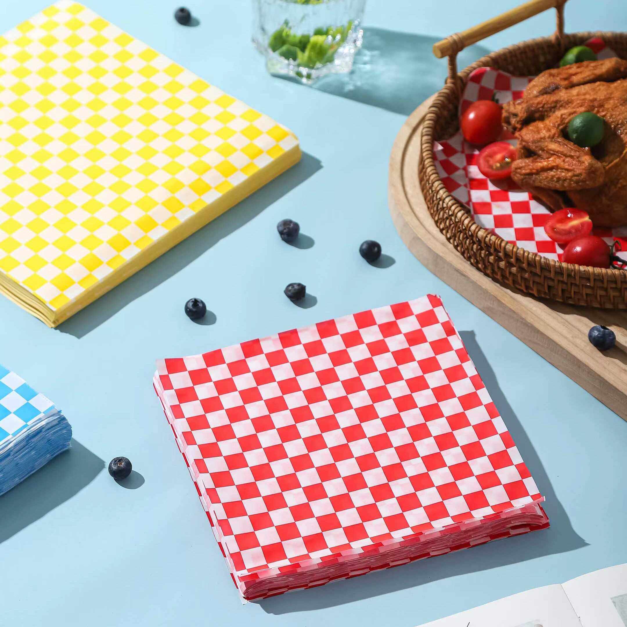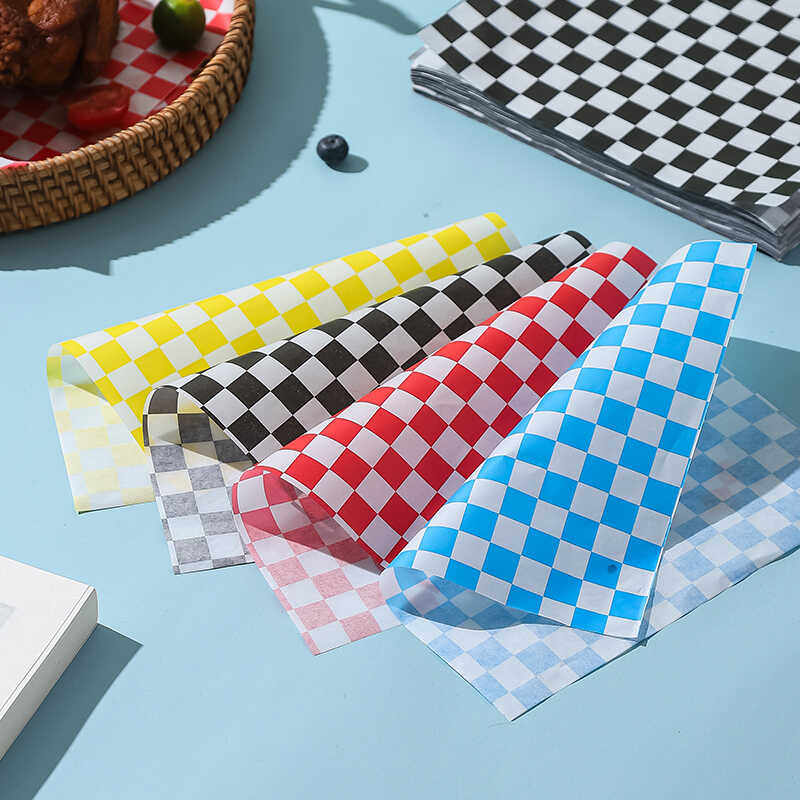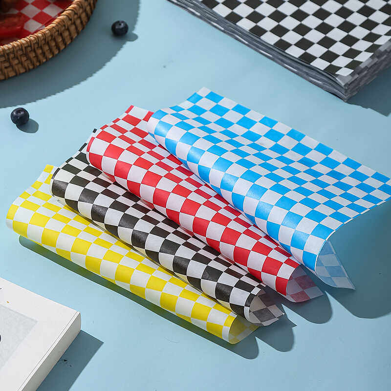 棋盘格子垫纸食品级家用烘焙防油纸餐厅油炸吸油纸淋膜彩色包装纸