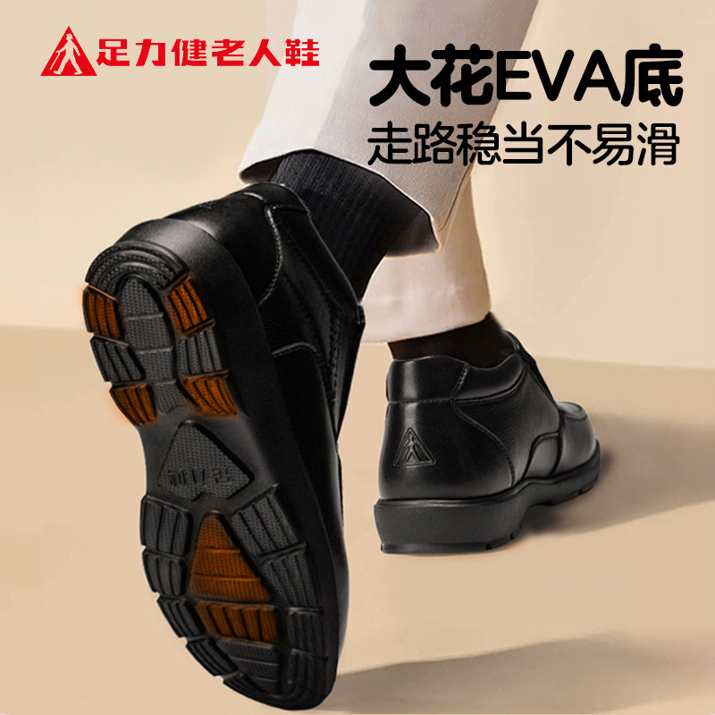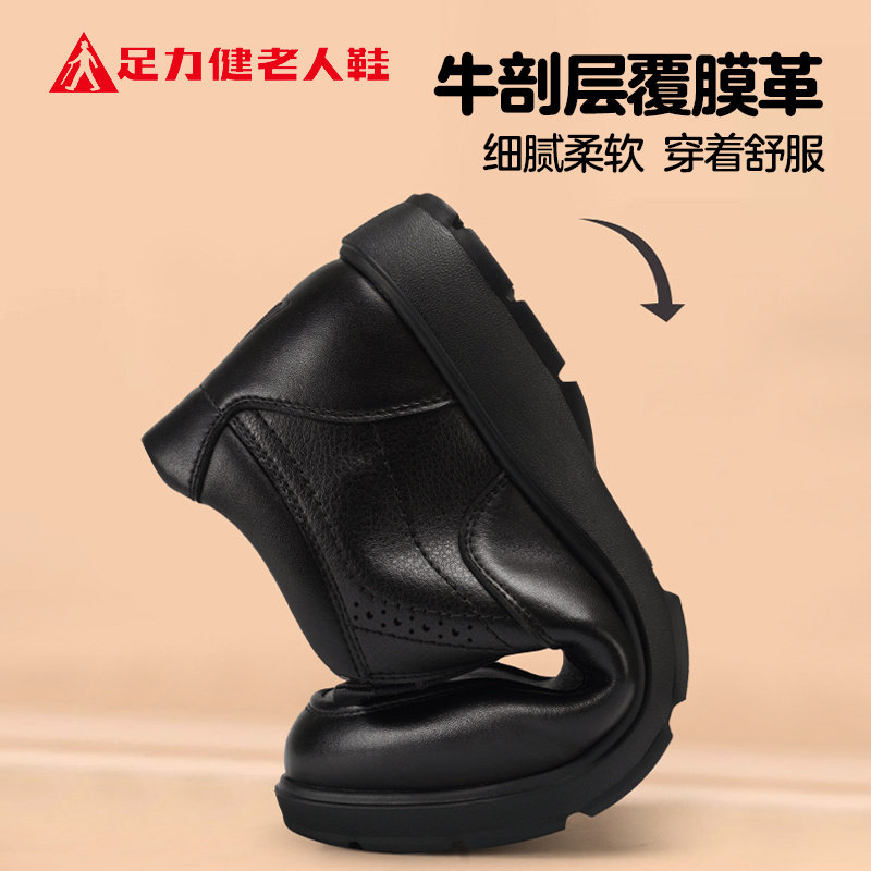 足力健老人鞋正品2024冬季新款加绒加厚保暖皮鞋男士皮鞋秋冬男鞋
