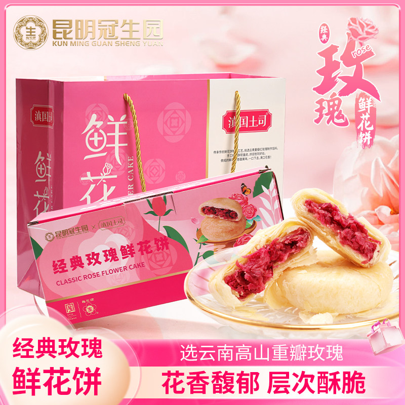 天猫滇国土司旗舰店,昆明冠生园鲜花饼450g礼盒滇国土司玫瑰花饼面包小吃搞点休闲零食,昆明冠生园鲜花饼 玫瑰饼 云南特产