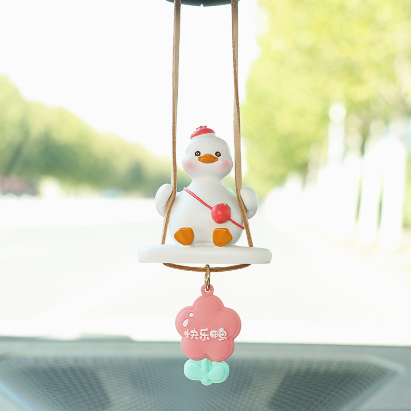 天猫巧萌旗舰店,荡秋千鸭汽车挂件车载后视镜内饰,可爱鸭 可滴香水 荡秋千 呆萌有趣