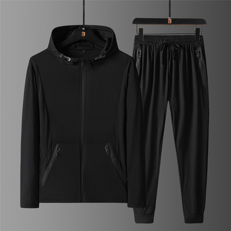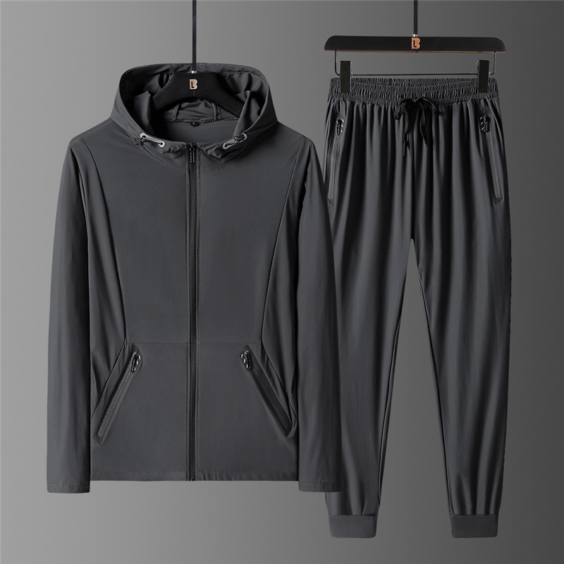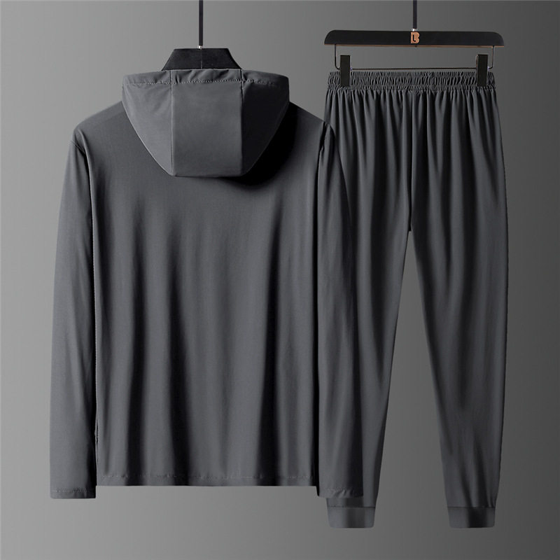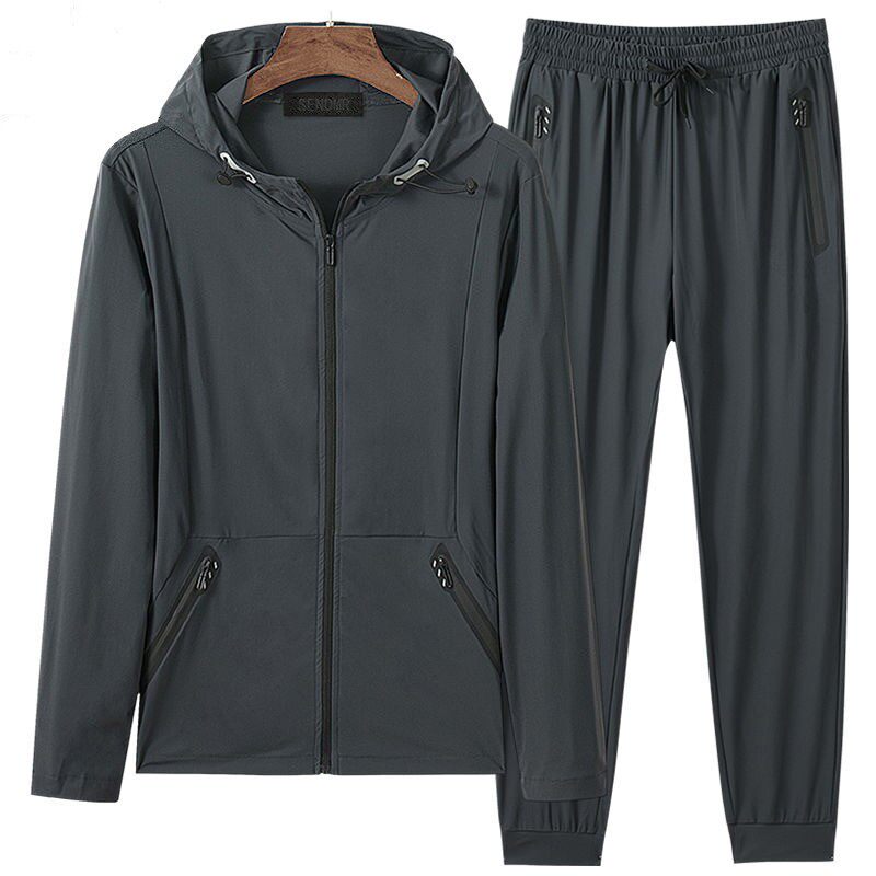 夏季薄款运动套装男士长袖跑步休闲速干运动服冰丝户外防晒衣外套