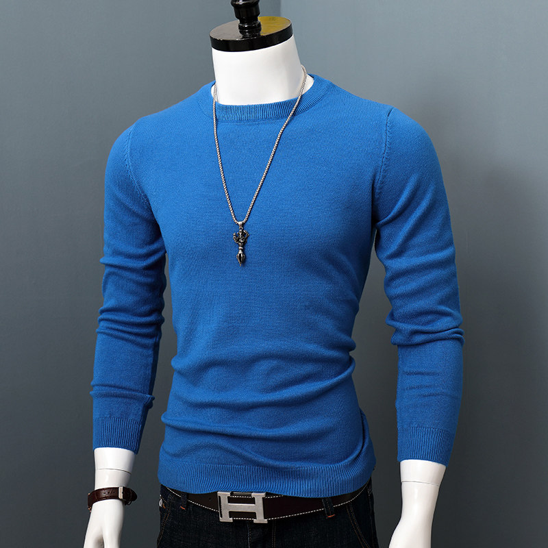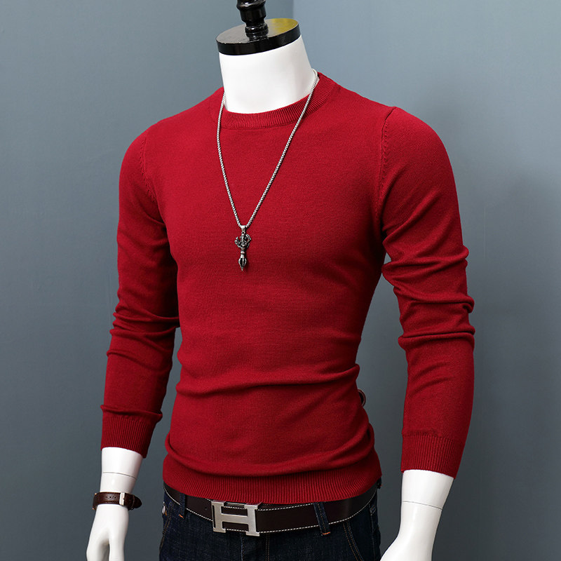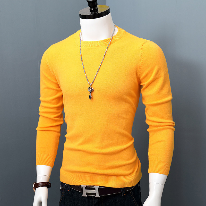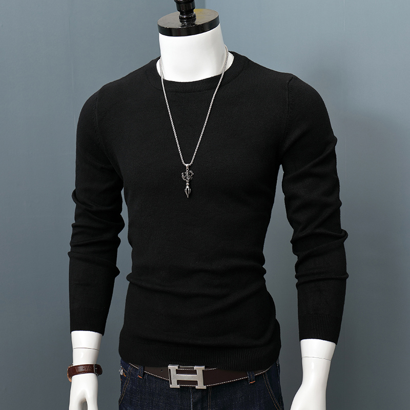 秋冬圆领毛衣男士纯色修身休闲套头羊绒衫青年加厚保暖打底针织衫