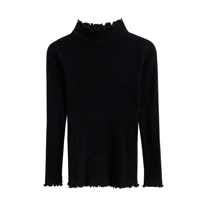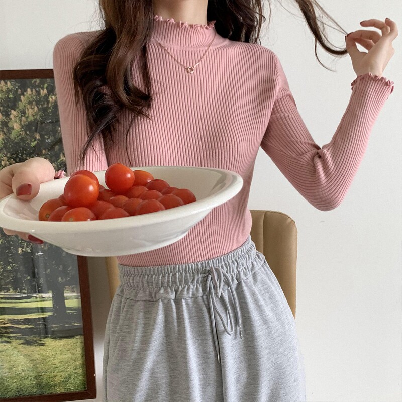 秋冬女装韩版批新款发半高领紧身打底上衣长袖木耳边弹力针织衫潮