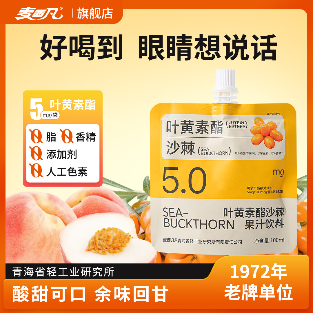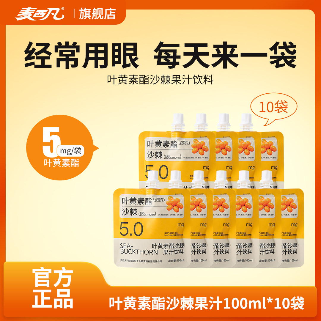 天猫麦西凡旗舰店,麦西凡叶黄素酯饮沙棘果汁饮料100ml*10袋儿童成人沙棘汁新年礼品,配料表干净 0脂 酸甜口感爱喝