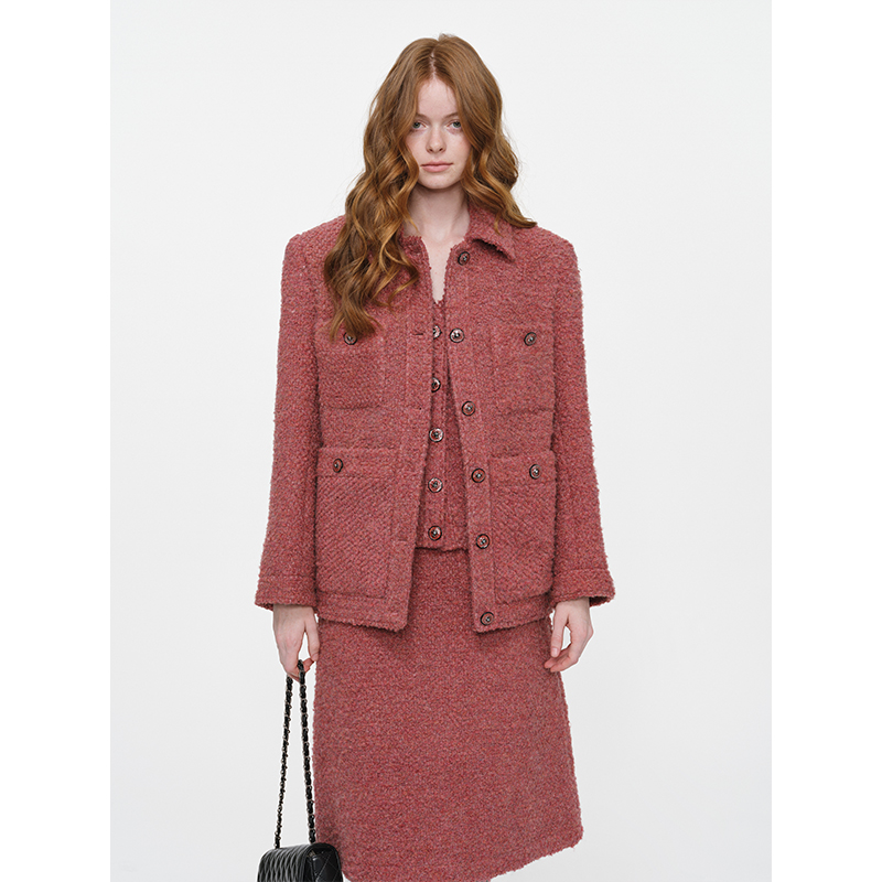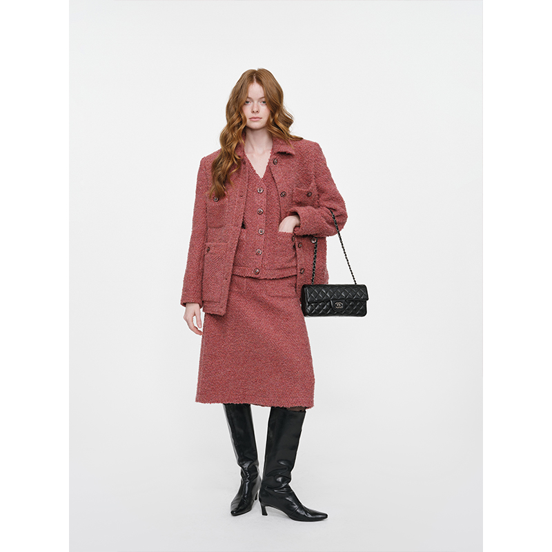 淘宝WEINISIAN朱小姐,手工坊系列2024秋冬香奶奶马甲+半身裙+外套 三件套小香风套装女