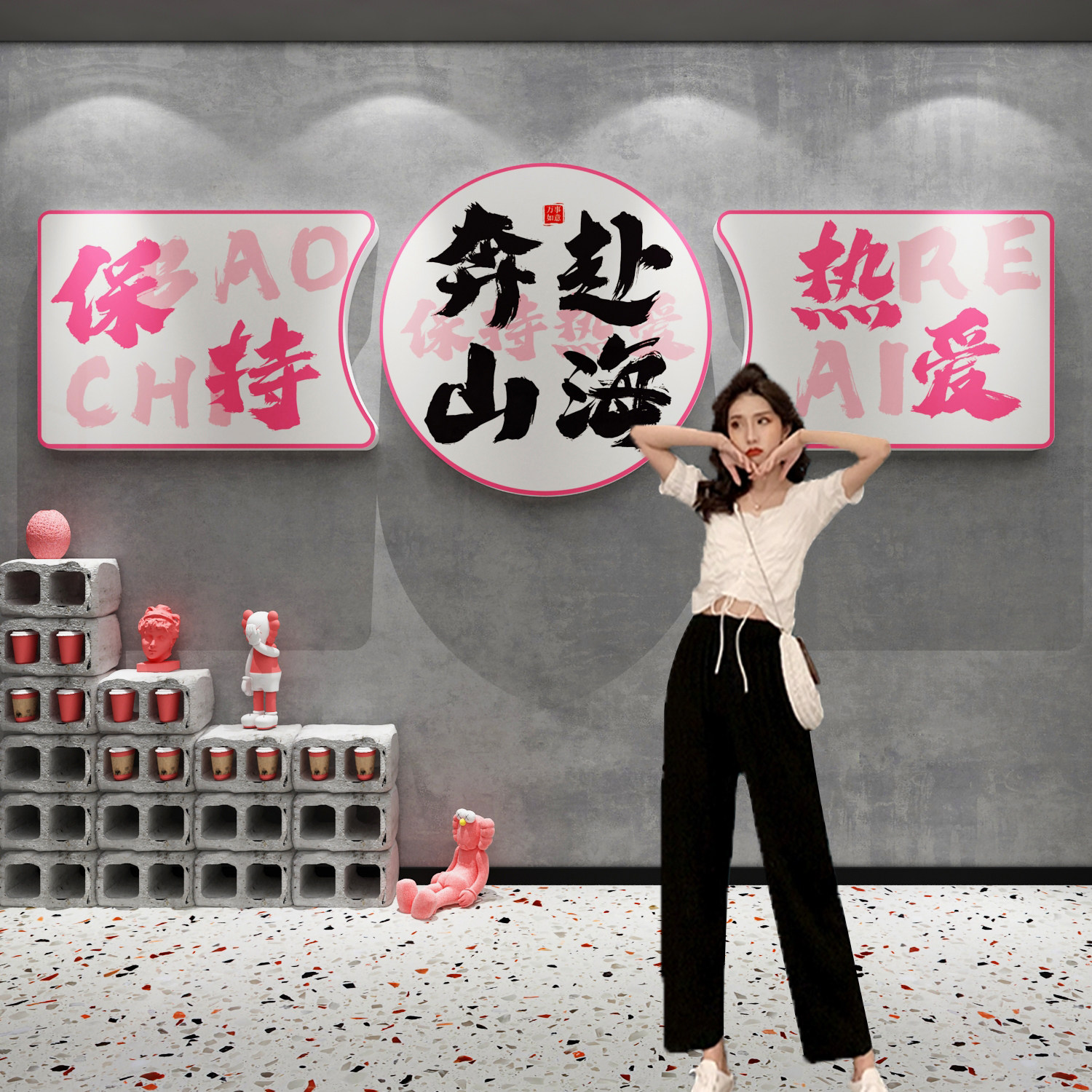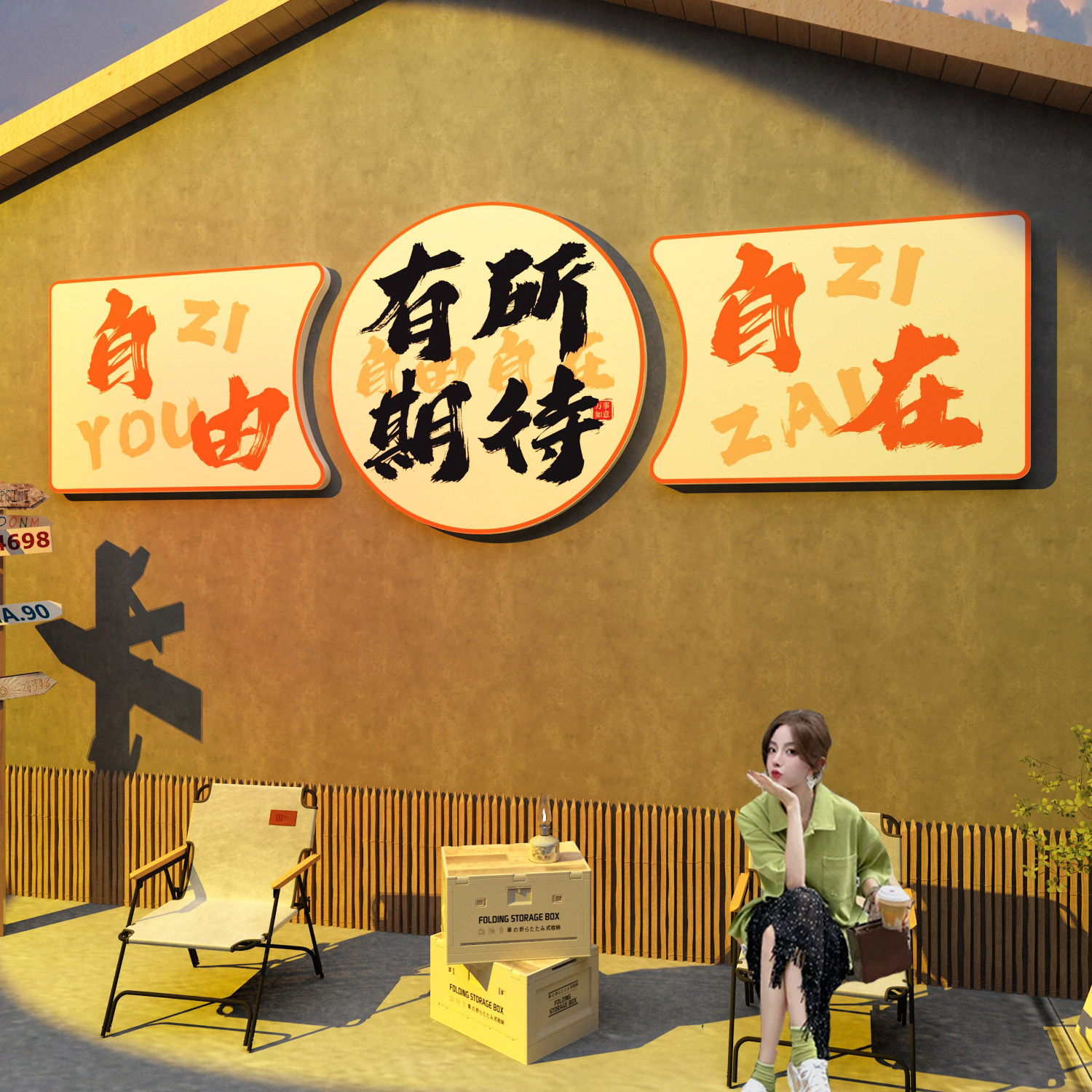 网红打卡地背景拍照区布置户室外露营风奶茶咖啡店墙壁面装饰贴纸