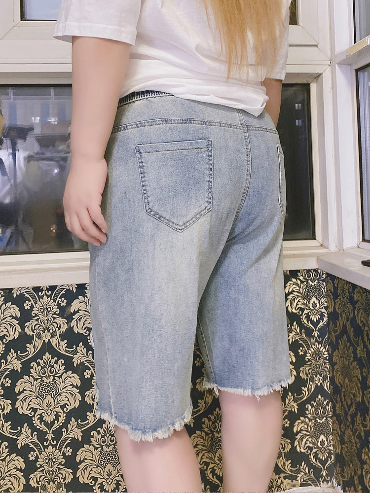 淘宝HELLO胖妞大码女装,240五分裤hello胖妞遮肉显瘦破洞