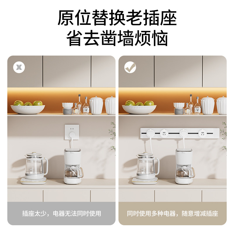 美的轨道插座排插可移动轨道插座导轨厨房客厅卧室无线排插厨房