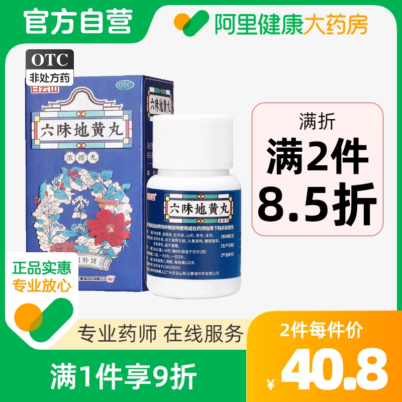 天猫阿里健康大药房,白云山补精强肾滋阴补肾六味地黄丸,滋阴补肾,男女同补,6盒1疗程(30天用量)