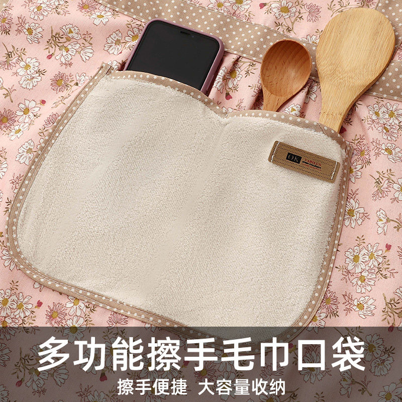 天猫洗士多家居旗舰店,围裙家用厨房纯棉女2022新款工作服,纯棉舒适面料,可擦手毛巾口袋