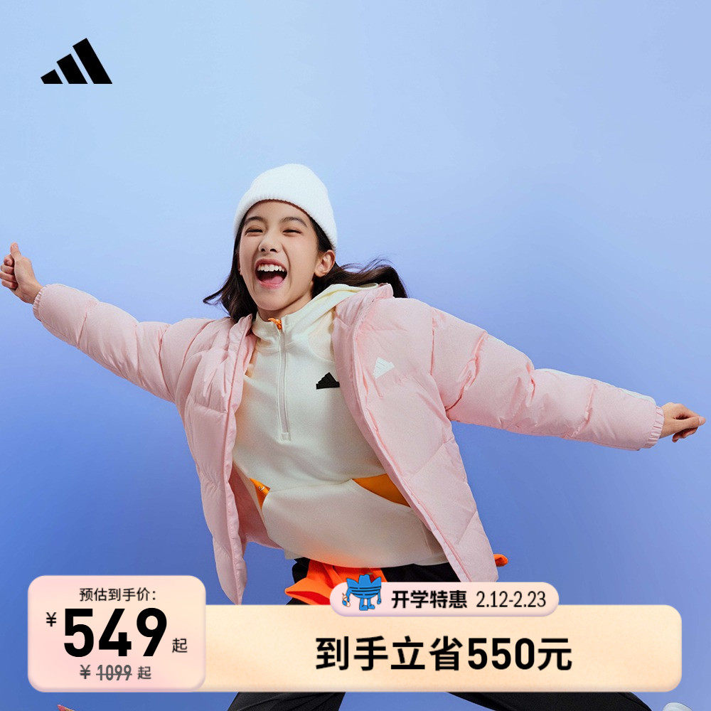 天猫adidas儿童官方旗舰店,阿迪达斯男女大童运动连帽羽绒服,不同尺码羽绒克重可能略有差异请以实物为准