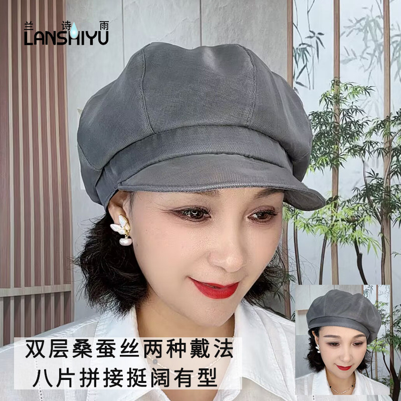 天猫兰诗雨旗舰店,八片拼接立体有型、100桑蚕丝,轻薄透气,遮盖白头发
