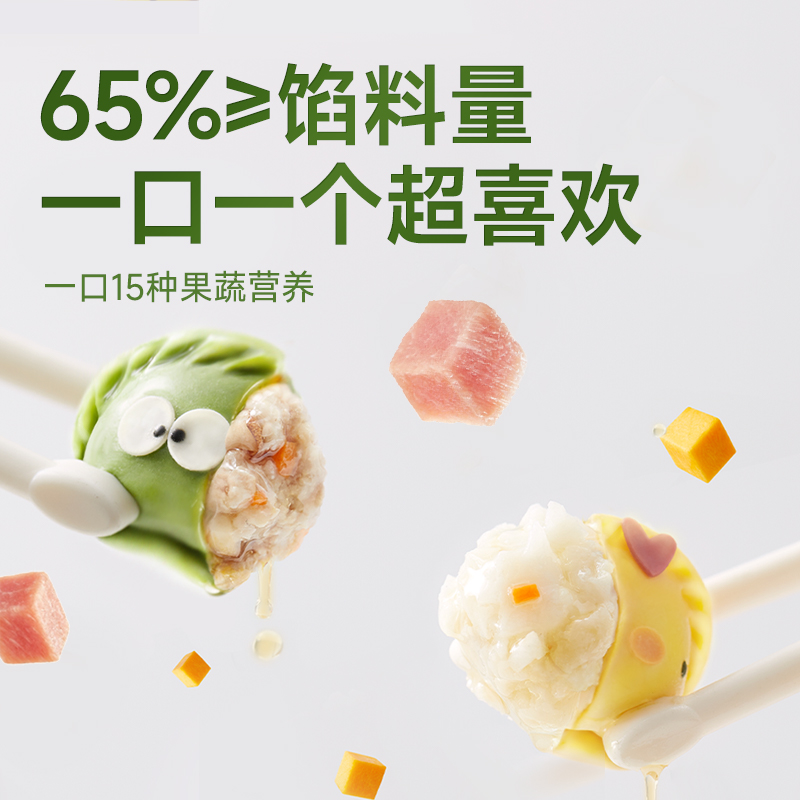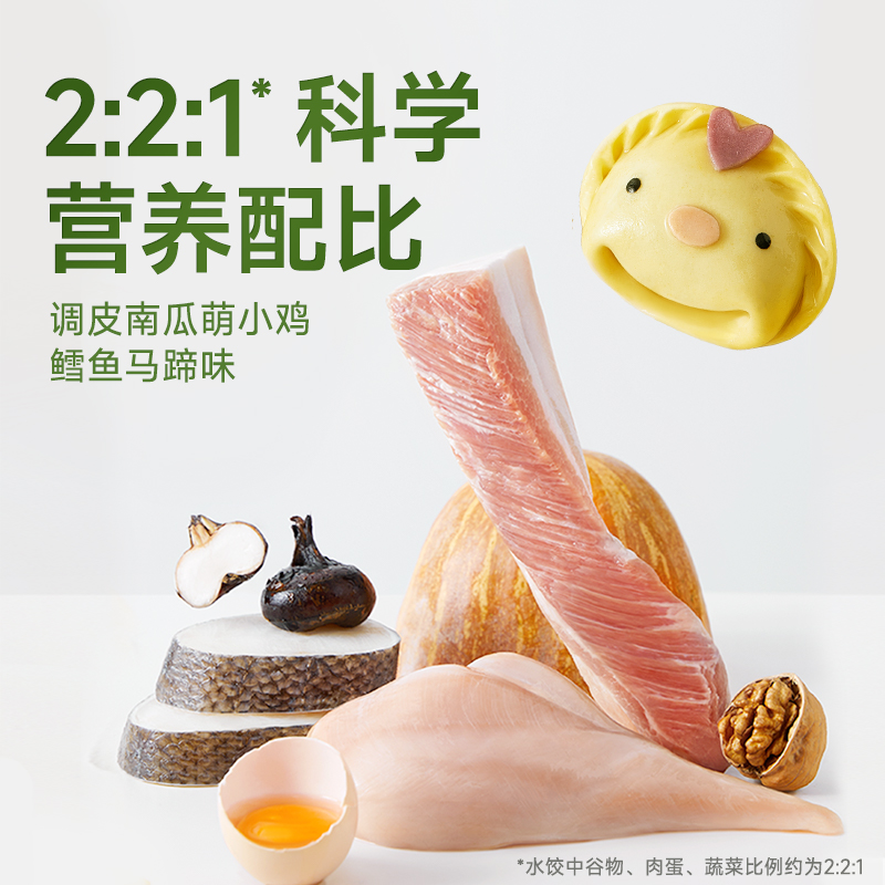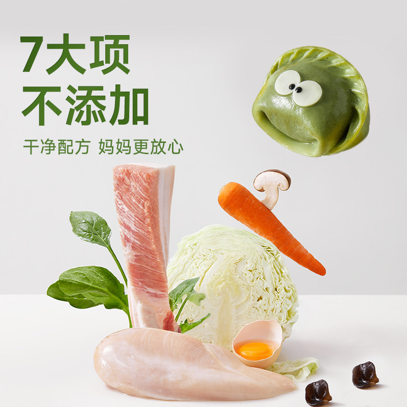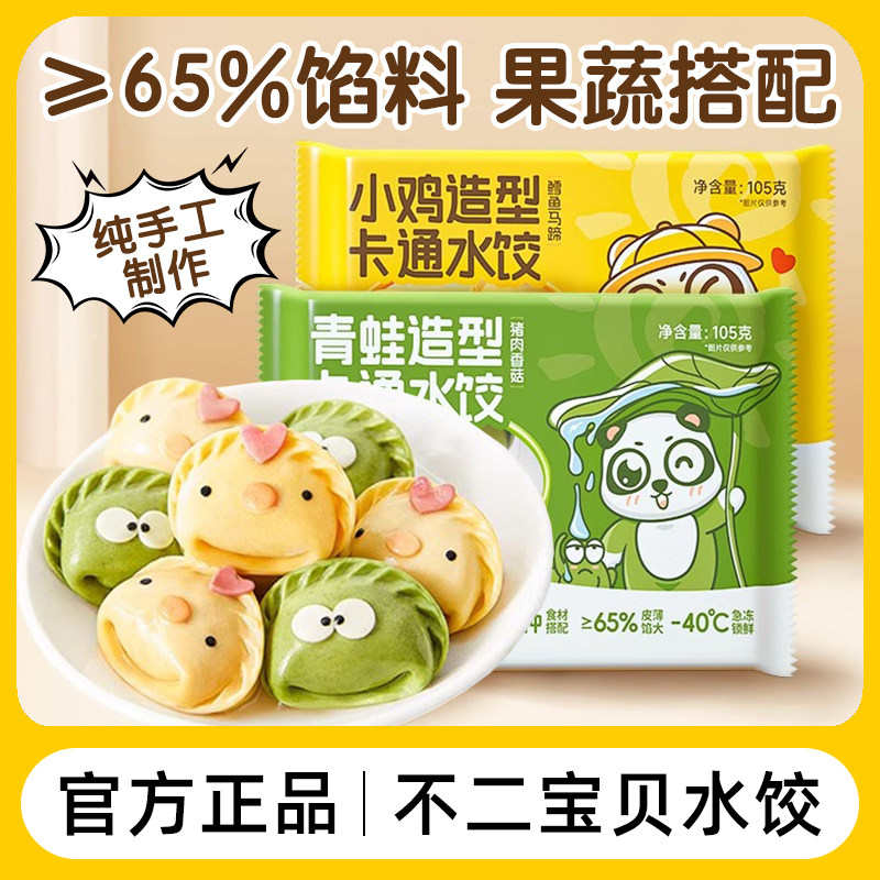 不二宝贝儿童水饺猪肉DHA鳕鱼香菇胡萝卜菠菜汁皮卡通包馄饨饺子