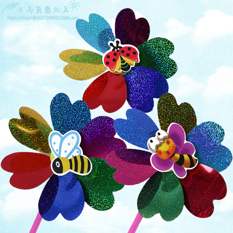 淘宝茵慈风车,新款双面亮片昆虫闪光塑料小风车,新款双面亮片加昆虫小风车闪光镭射儿童卡通塑料风车地摊装饰玩具