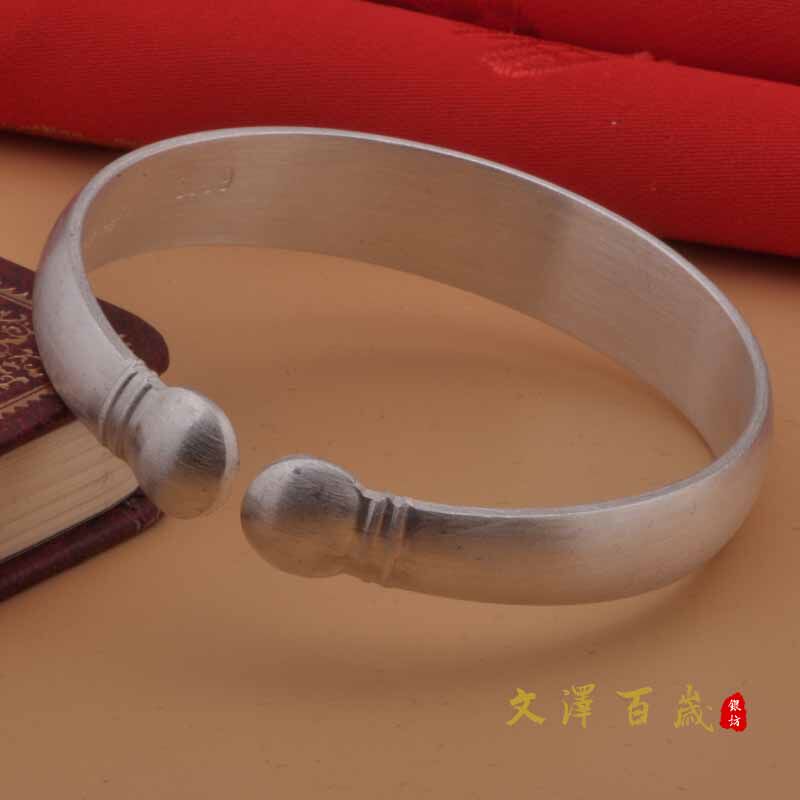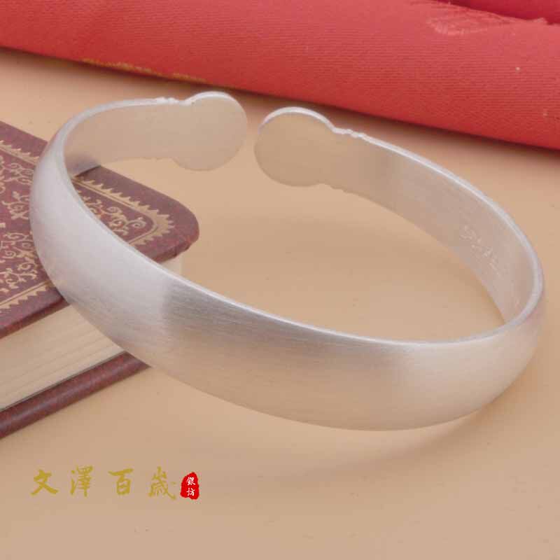 文泽百岁银坊银手镯情侣银饰 光面圆头足银手镯手工定做NO071