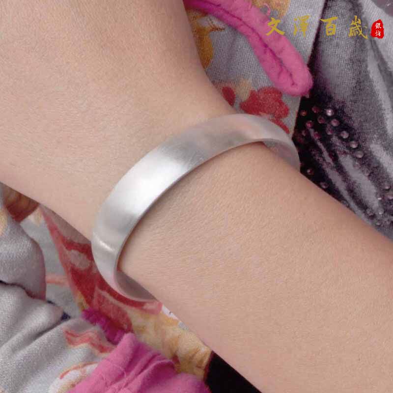 天猫文泽百岁银坊旗舰店,文泽百岁银坊情侣银饰光面银手镯,亚光手工亮光拍时注明 和手腕周长