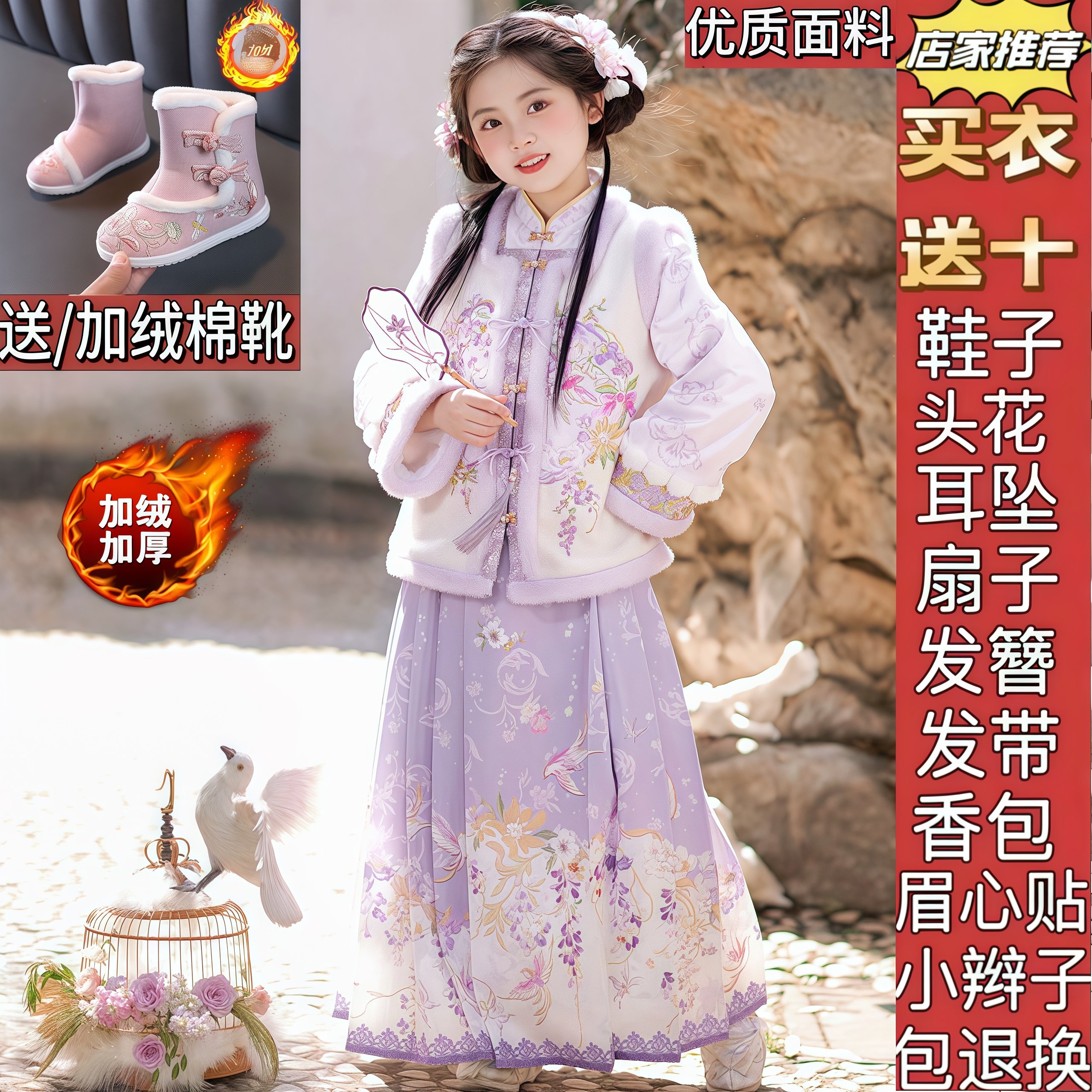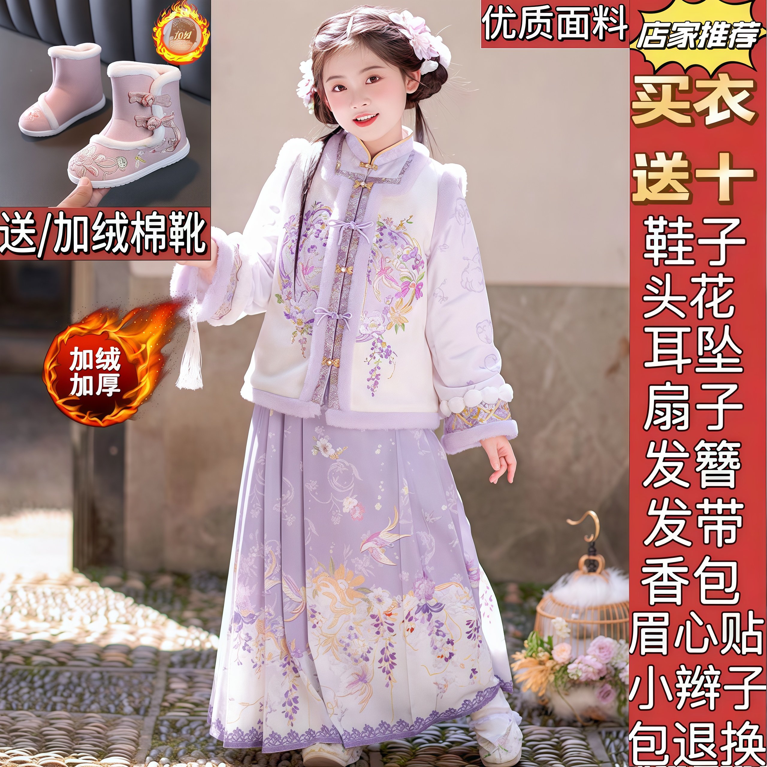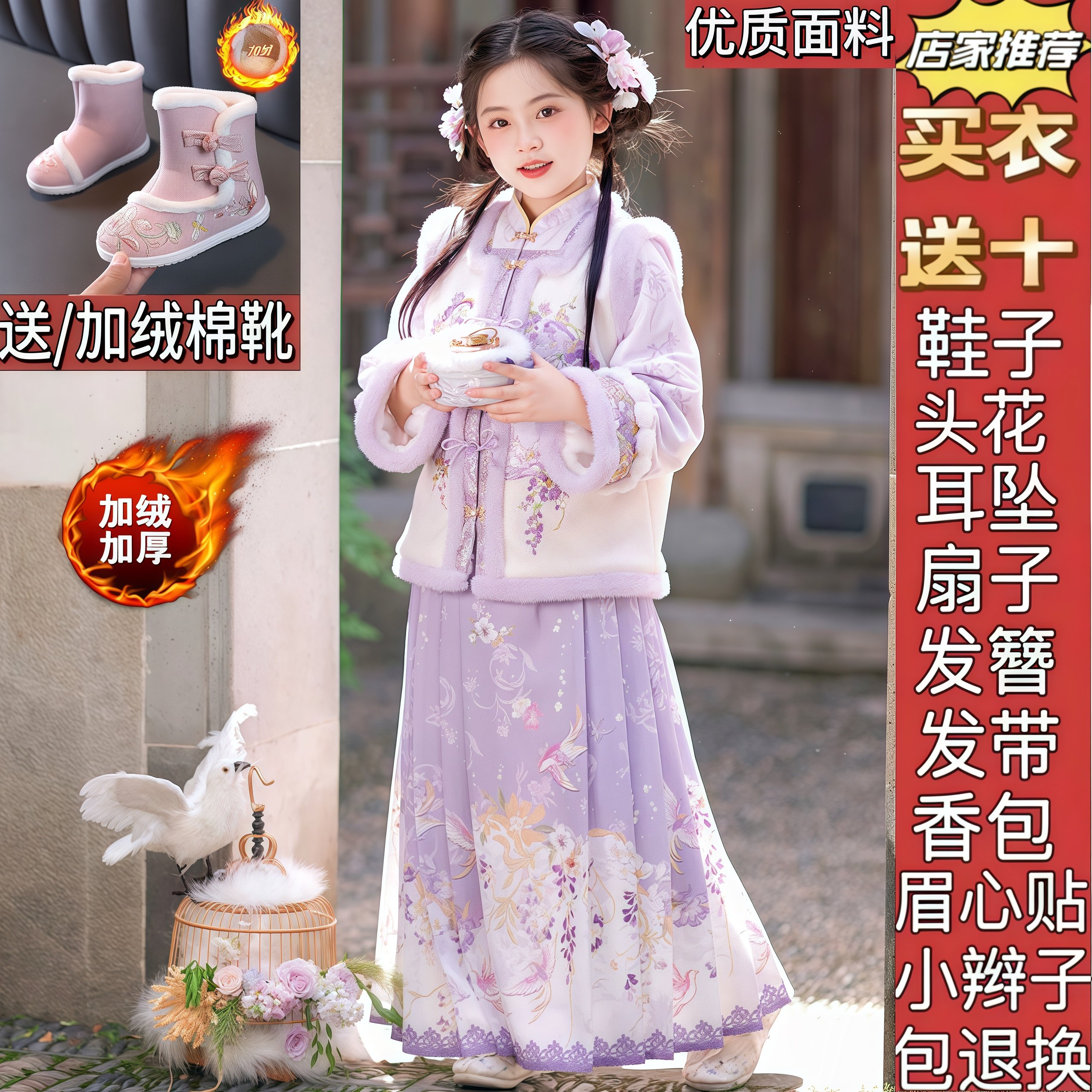 淘宝萌童汉馆,紫色汉服女童2025新款儿童国风古风超仙套装冬季女孩绝美裙子冬装