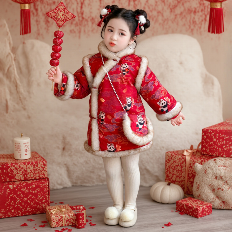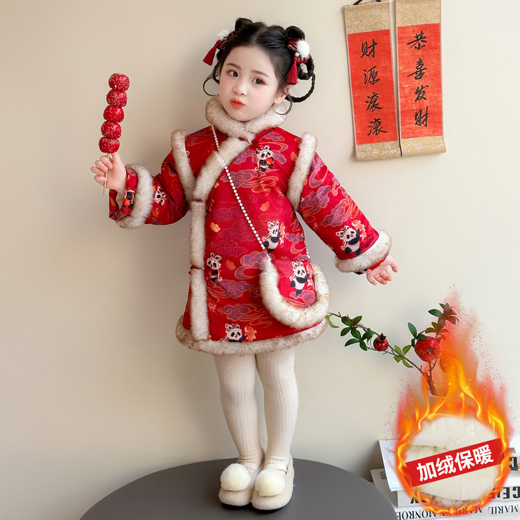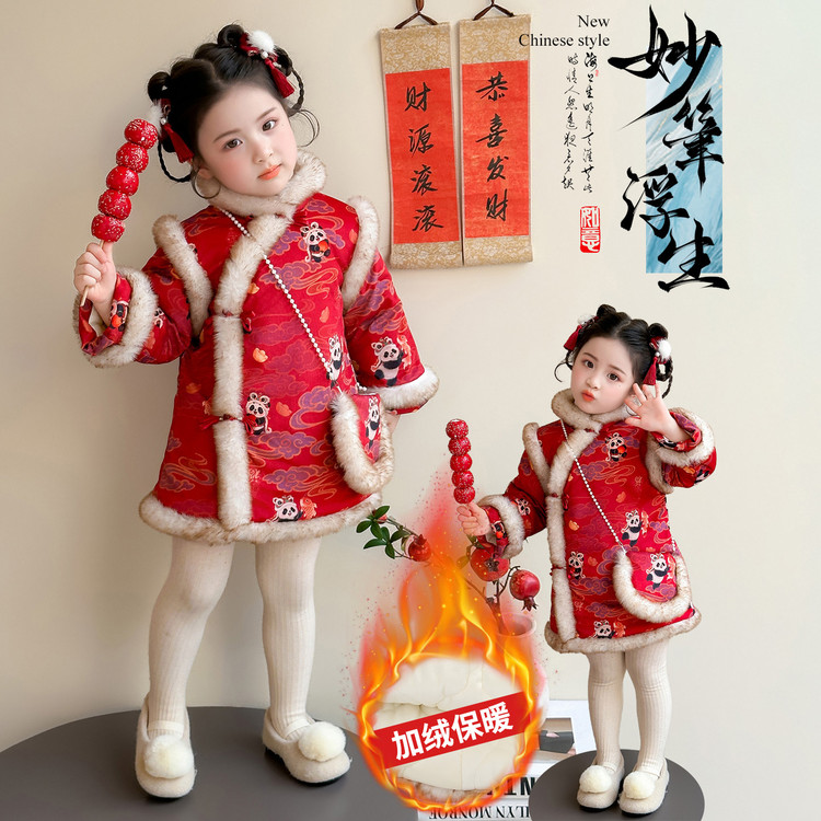 淘宝鹿圆童装店,女童加绒旗袍裙冬季保暖冬装