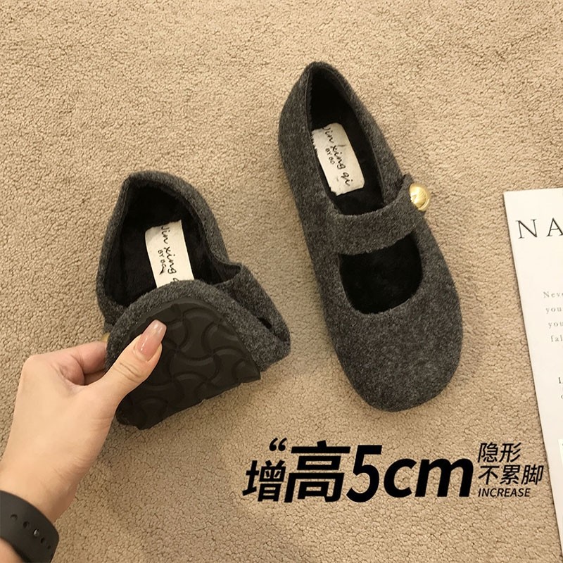 天猫淘工厂美妆直营,内增高灰色毛呢勃肯鞋毛毛鞋加绒玛丽珍棉鞋女2025新款秋冬豆豆鞋
