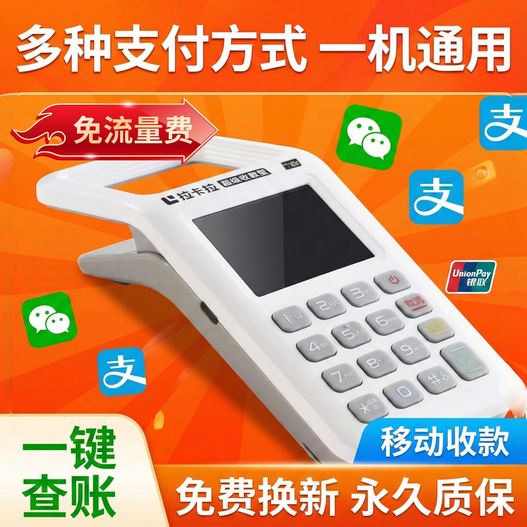 淘宝银联个人收款机器,0流量费,个人秒到收款机