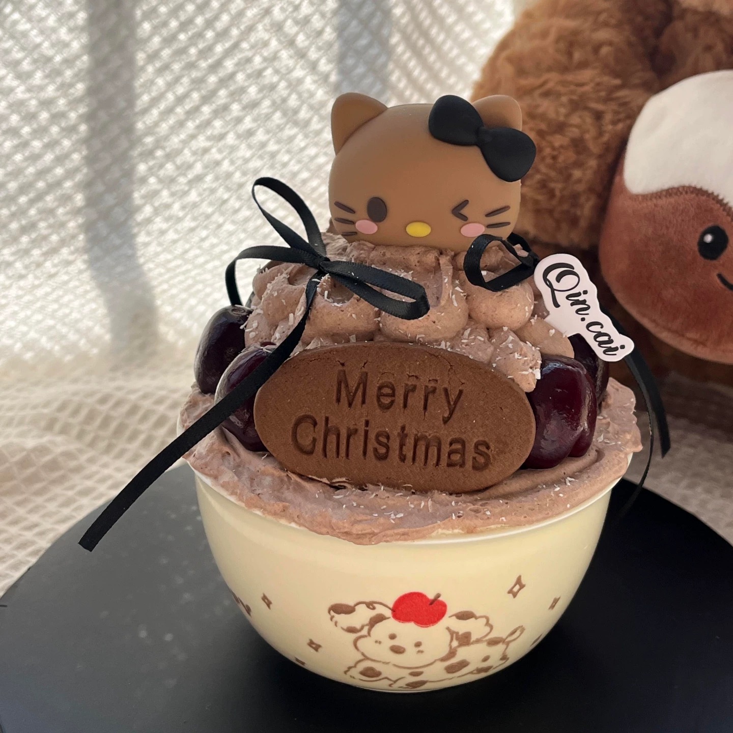 淘宝遇见你烘焙,网红圣诞节新年黑皮KT猫蛋糕装饰Hellokitty车厘子碗樱桃蛋糕碗