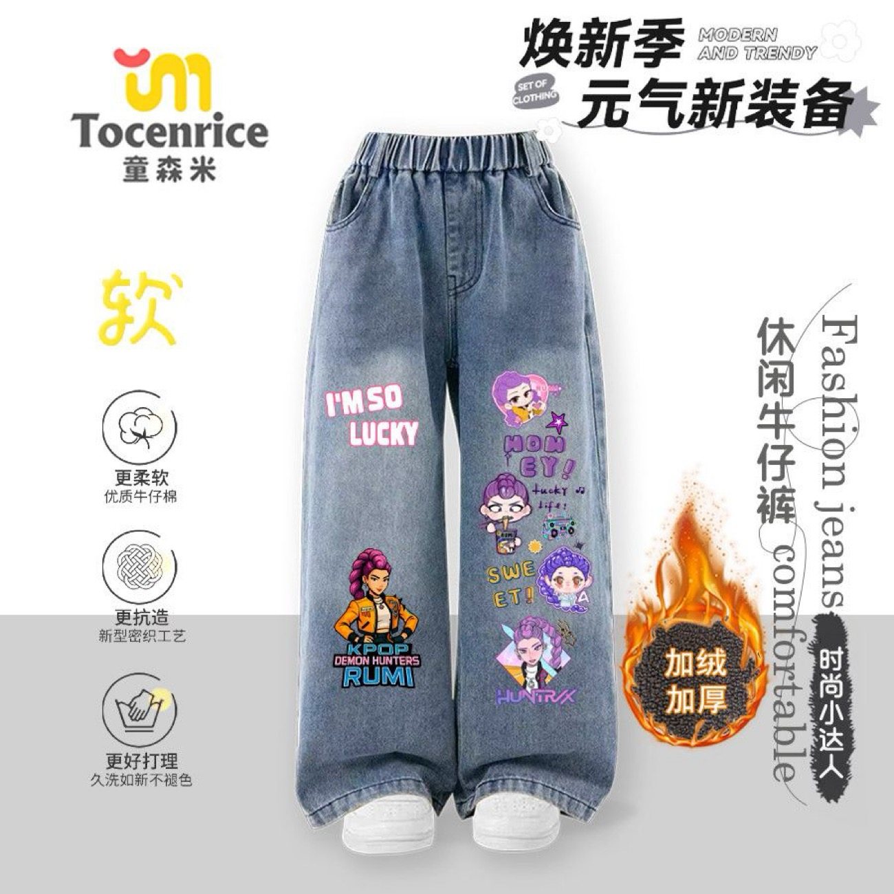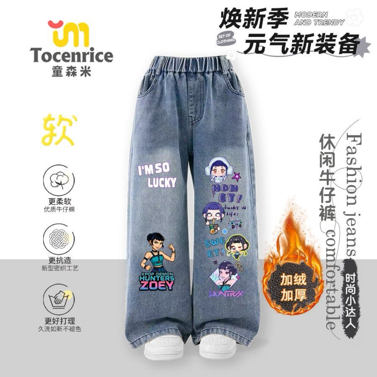 淘宝心怡童装,新款猎魔女团儿童加绒牛仔裤