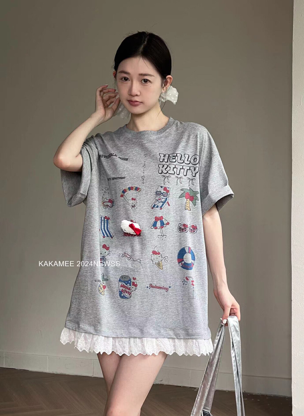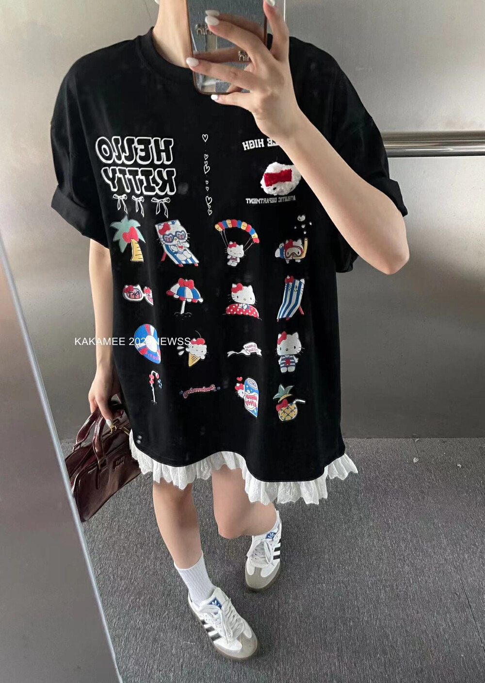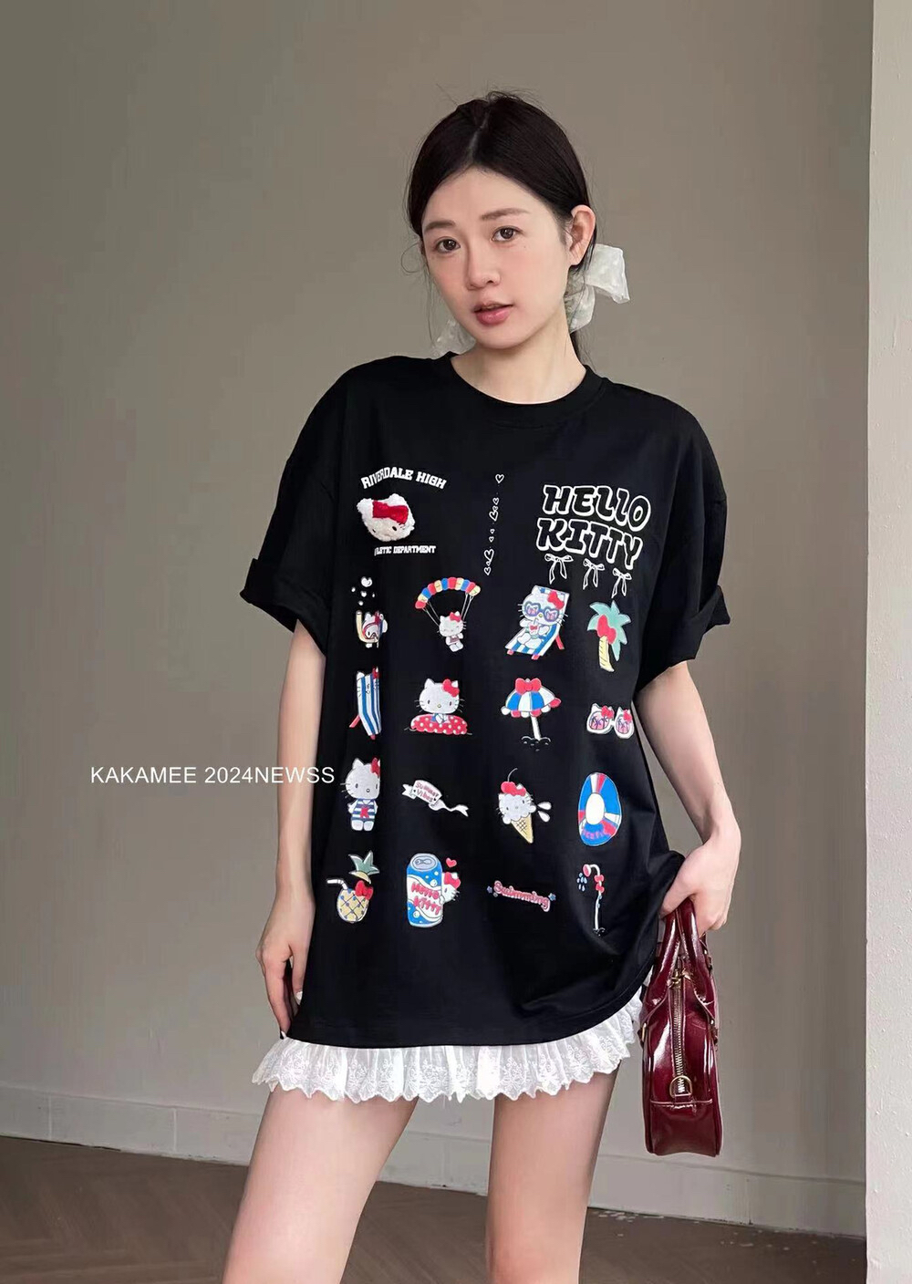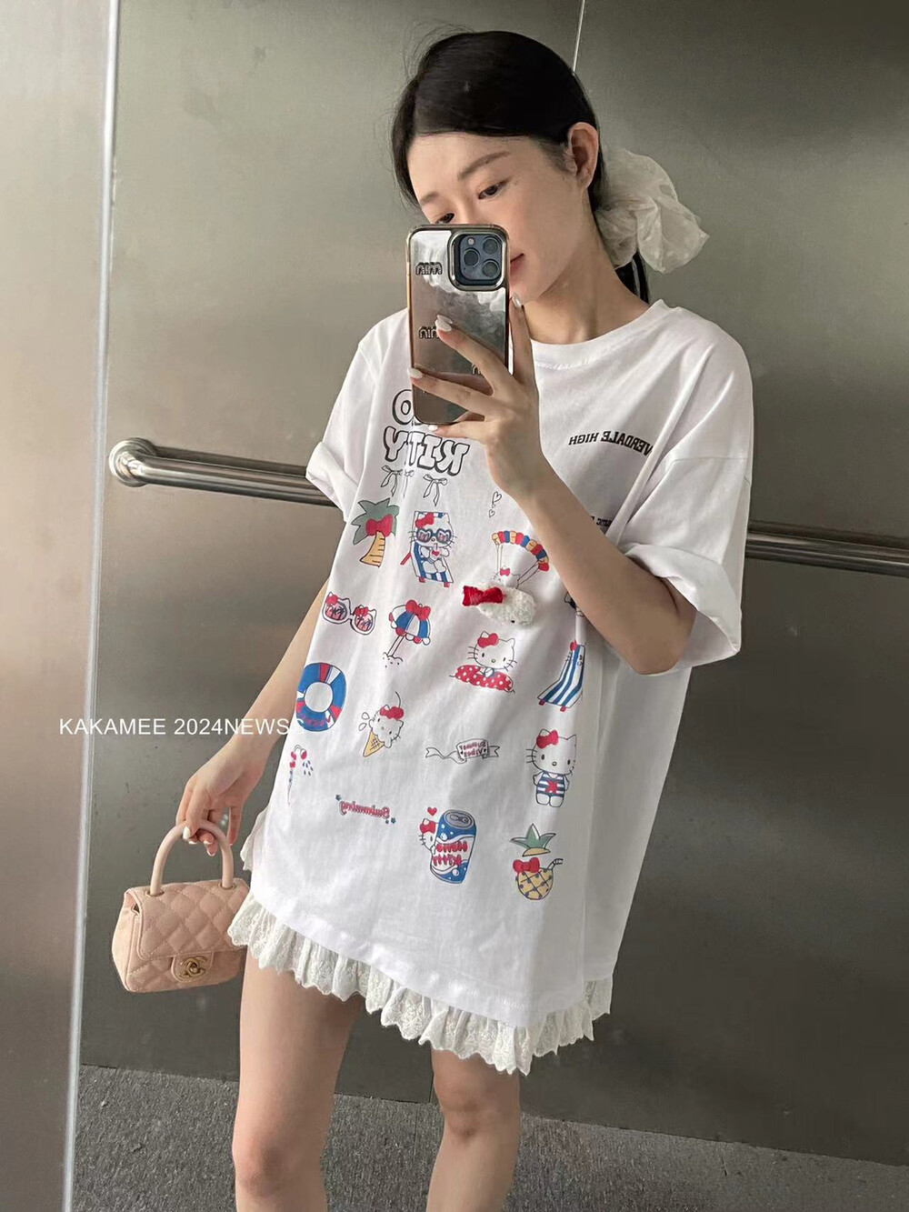 淘宝LE studios,KAKAMEE夏季哈喽kt猫立体装饰短袖T恤连衣裙 配卡通胸针 6762