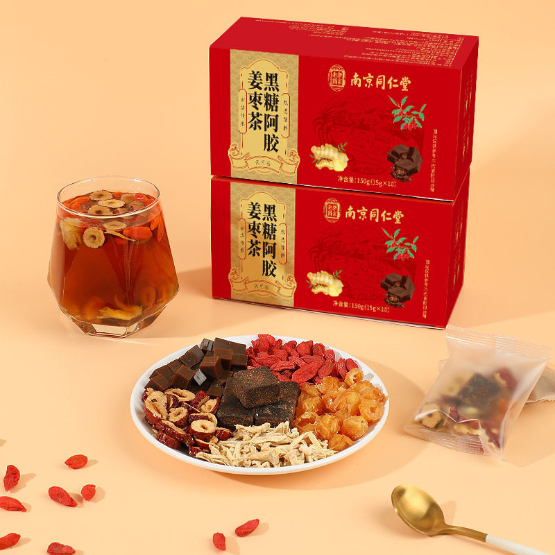 淘宝大健康滋补源头,南京同仁堂乐家老铺黑糖阿胶姜枣茶便携冲饮黑糖姜茶15g*10包/盒