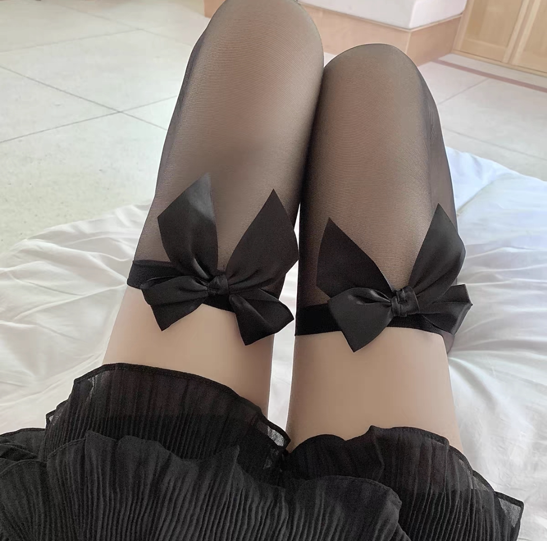 淘宝夜幽丝袜,长筒丝袜女薄款性感黑丝过膝袜长腿白丝半截大腿根纯欲jk蕾丝黑色