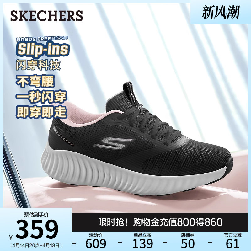 天猫skechers官方旗舰店,闪穿鞋Skechers斯凯奇Slip ins系列女2025夏一脚蹬厚底缓震跑步鞋