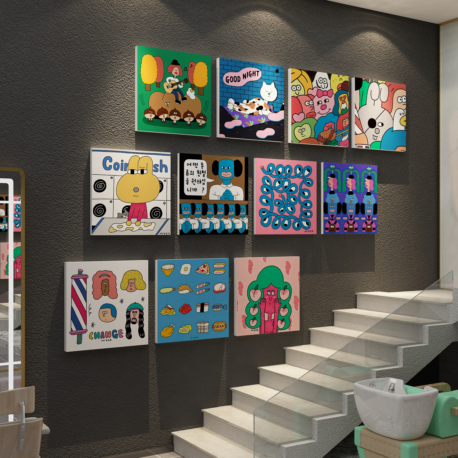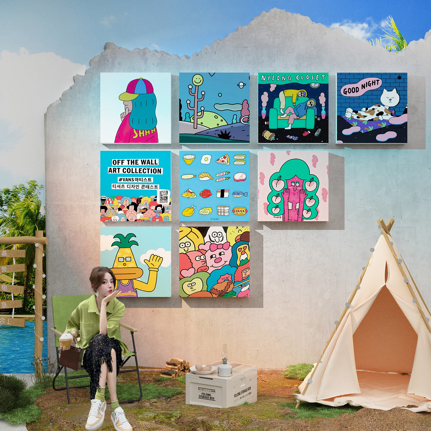 网红公仔打卡拍照区布置奶茶店墙壁装饰摆件咖啡厅角馆场背景互动
