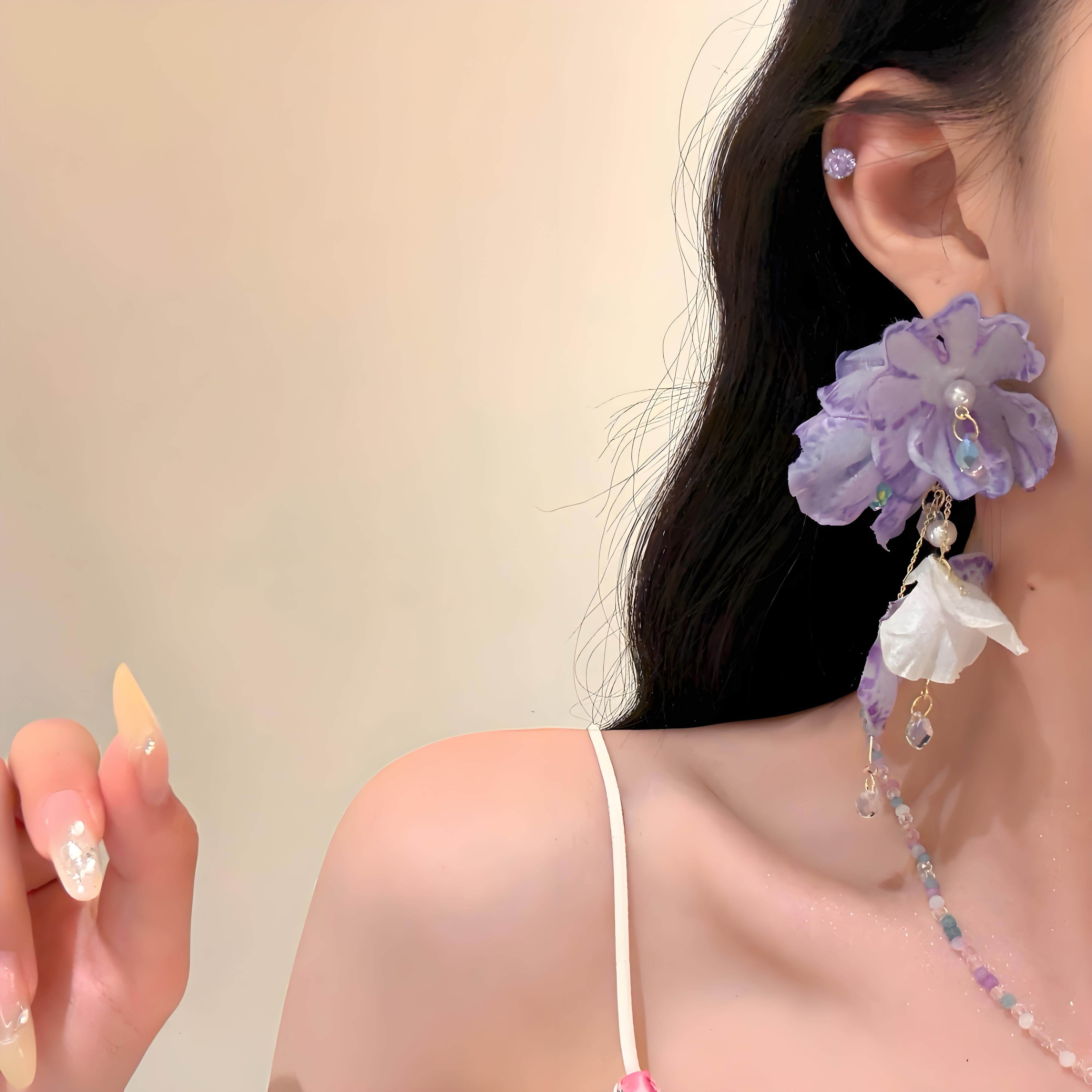 淘宝Peach tea,梦幻紫色~绝美海边度假花朵耳环