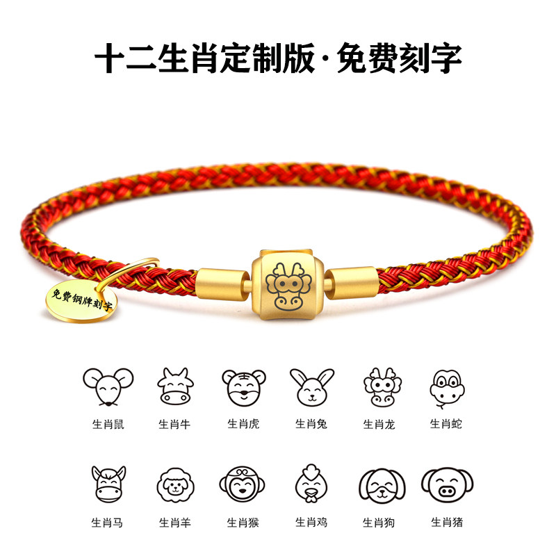 3mm转运珠手绳防水不锈钢3D硬金黄金编织皮绳生肖龙刻字红绳手链