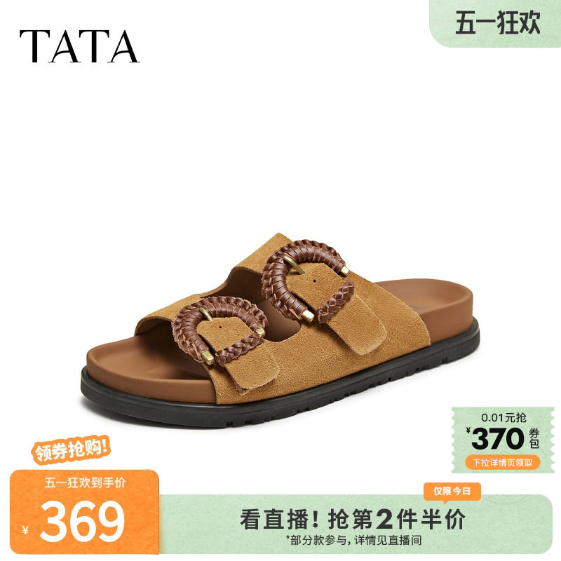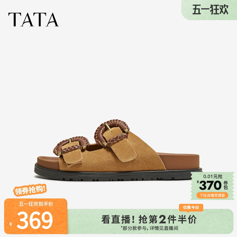 天猫他她Tata官方旗舰店,TATA他她复古厚底勃肯拖鞋女外穿沙滩鞋凉拖2025夏季新款GRW01BT5,勃肯鞋外穿时尚拖鞋