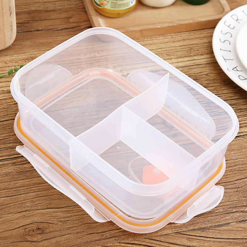 淘宝妙 洁企业商城店,妙洁品饭盒学生微波炉可爱透明便当盒长方形塑料食堂分隔格简约保