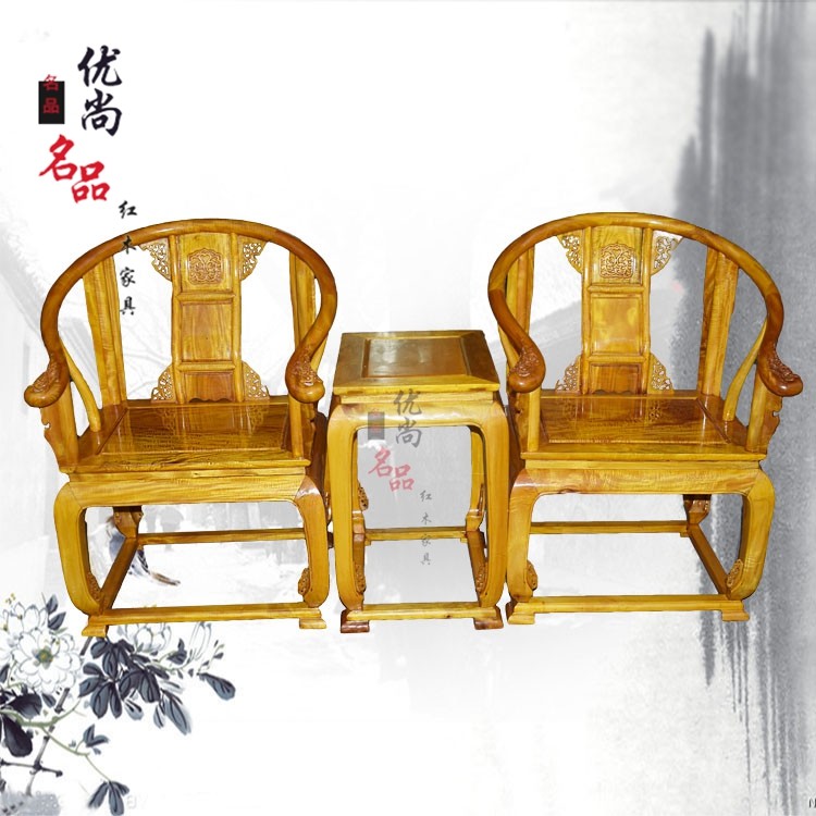 淘宝正品供应链25,新款红木家具 金丝楠木仿古皇宫椅三件套 明清古典圈椅 靠背休闲
