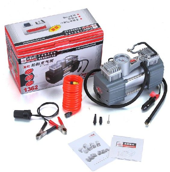 1362大功率汽车充气泵车载打气泵电动双缸金属充气泵带灯