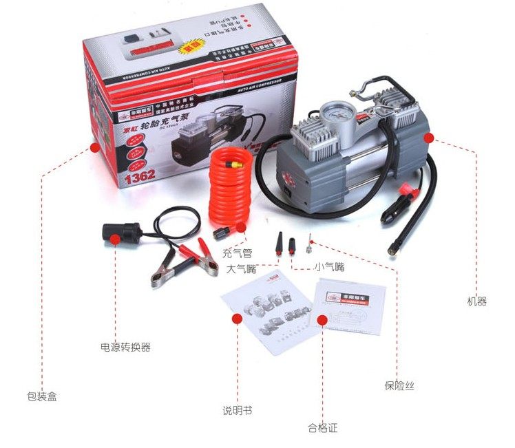 淘宝胡航好物推荐,1362大功率汽车充气泵车载打气泵电动双缸金属充气泵带灯