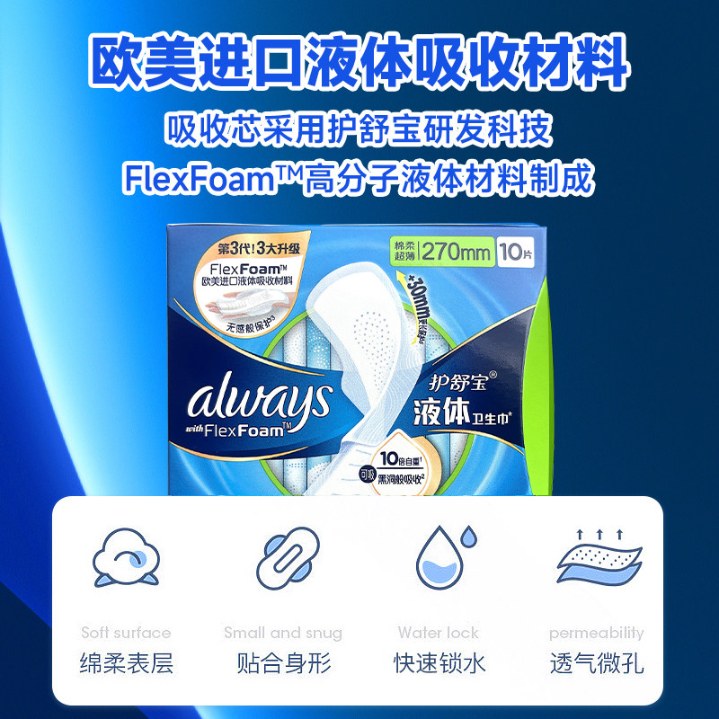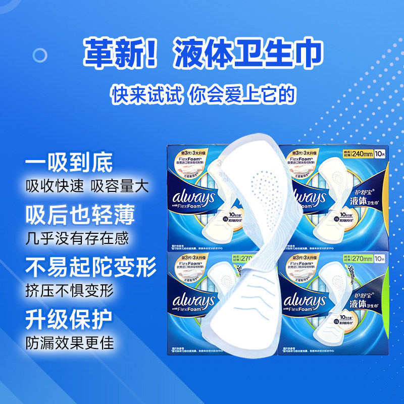 护舒宝液体卫生巾进口日用240mm30片姨妈巾超薄透气官方正品旗舰券后价¥62.93宝洁官方旗舰店 2 年前