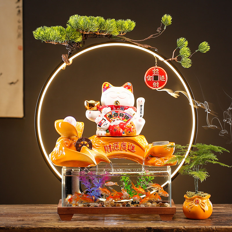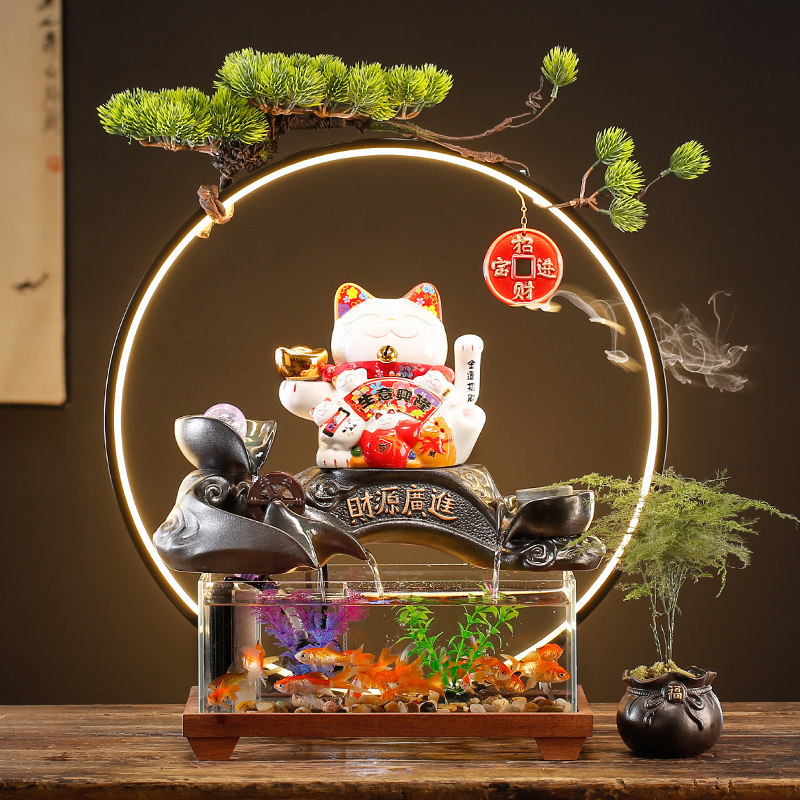 淘宝墨修缘,招财猫流水摆件开业礼品