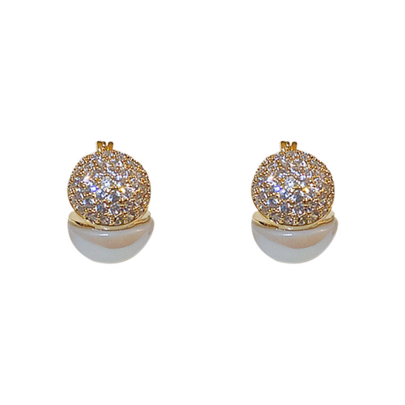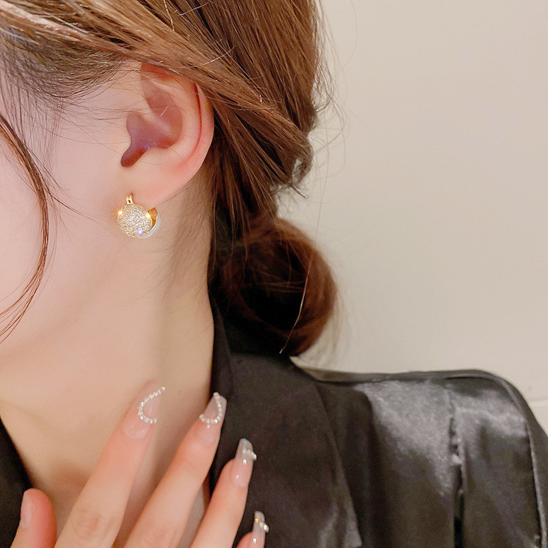 法式珍珠锆石圆形几何耳扣女领券