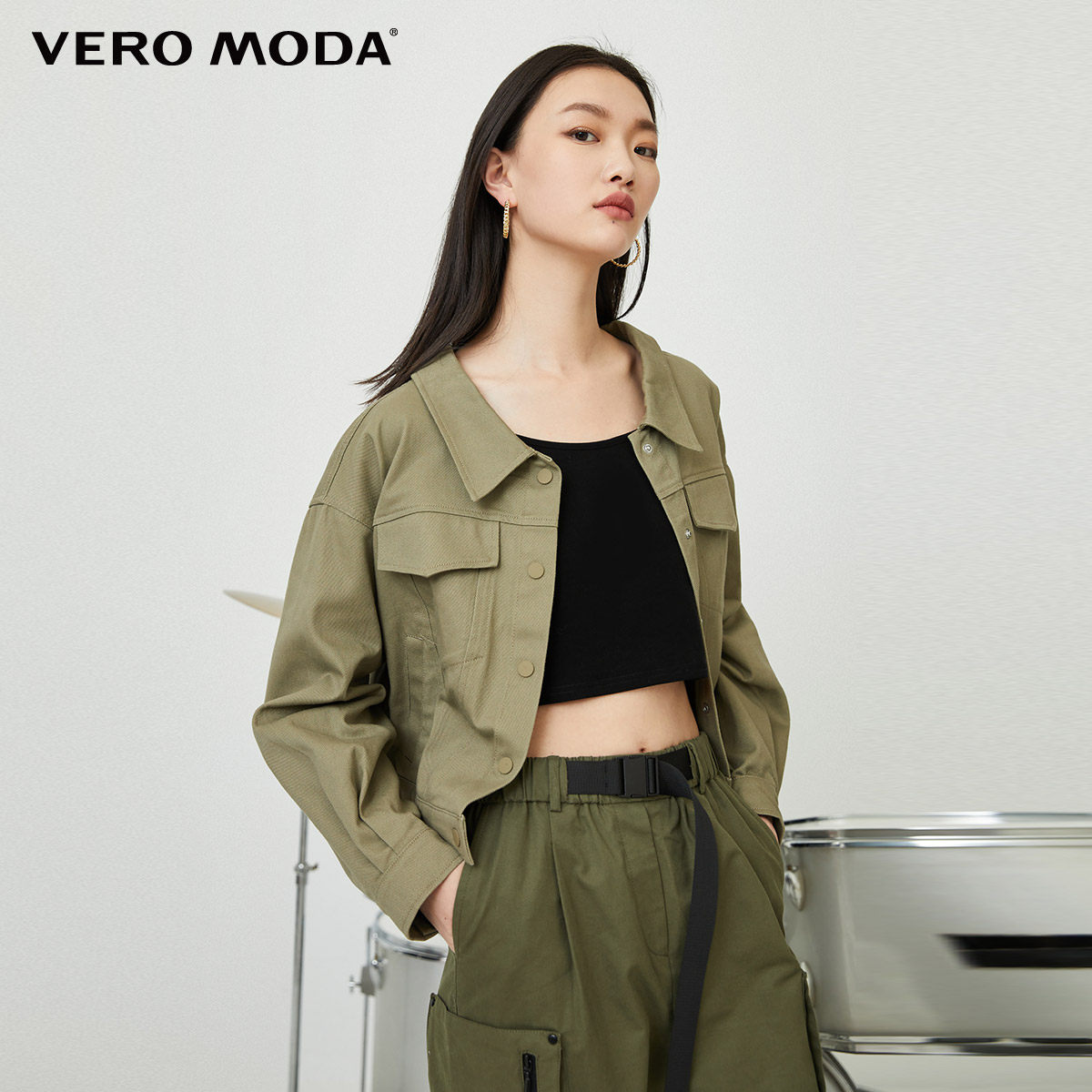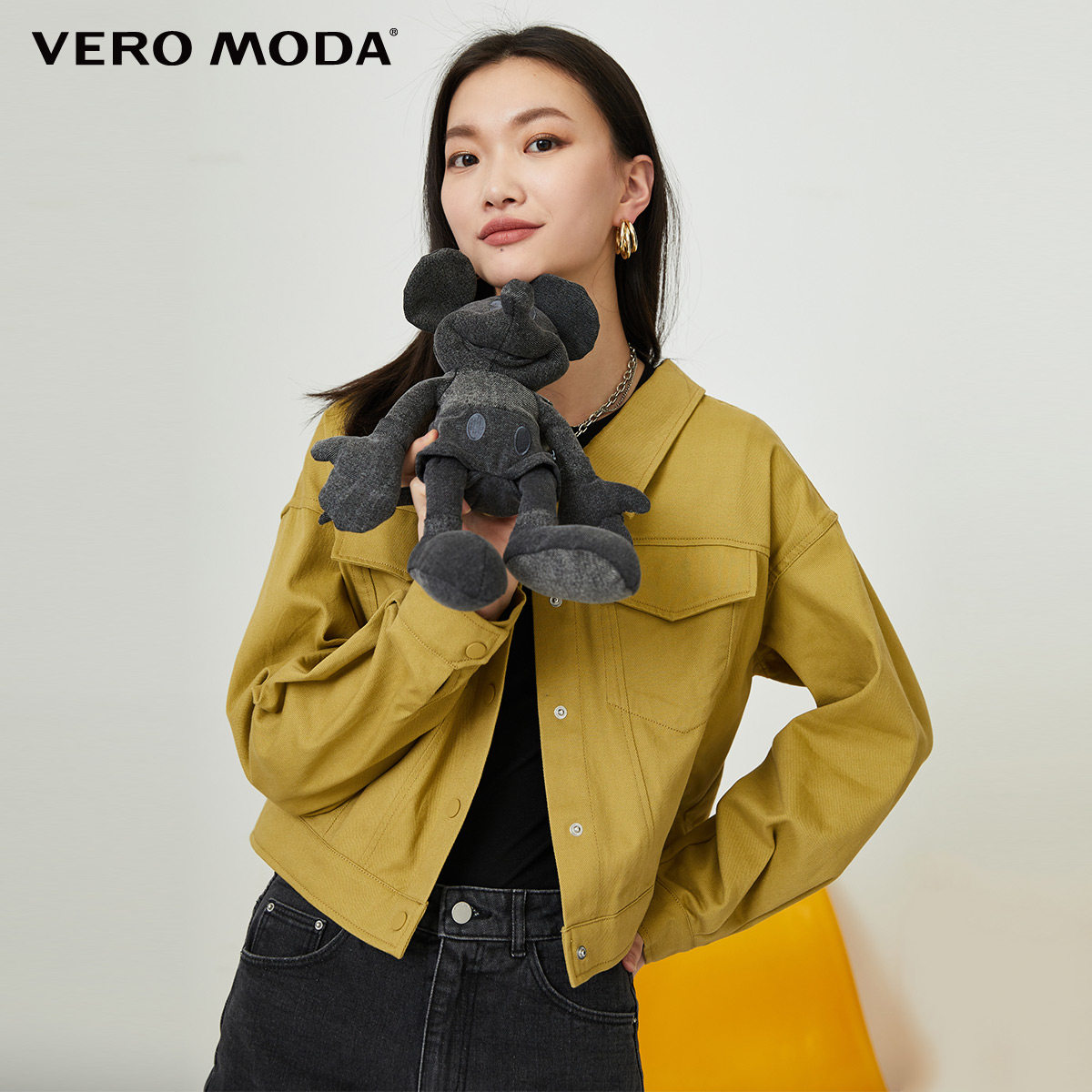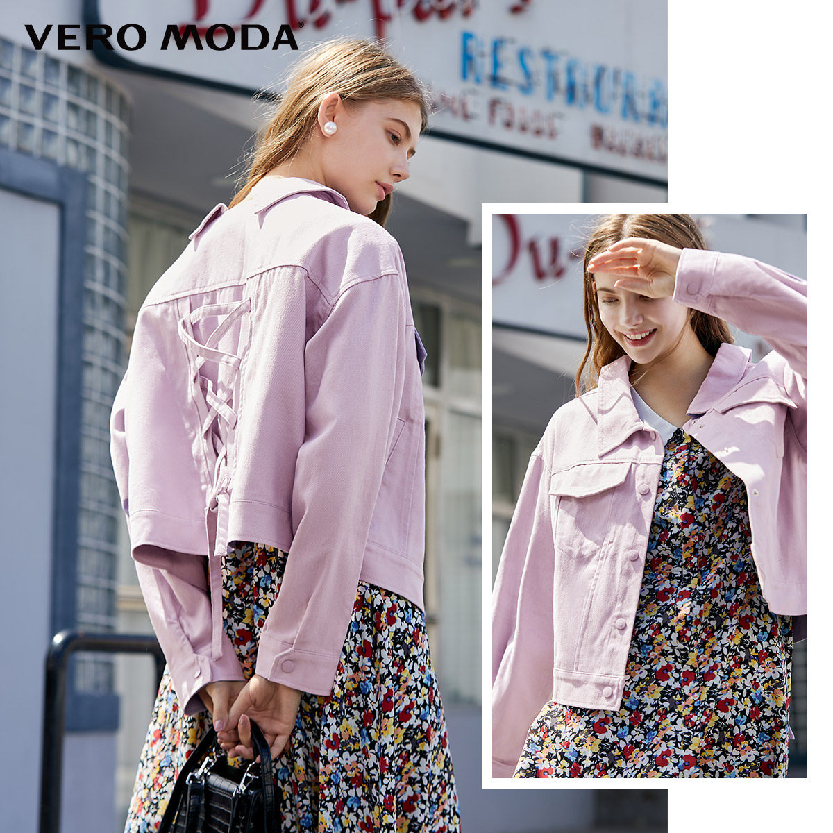 绫致Vero Moda2023春秋季新款后背绑带纯棉牛仔外套女