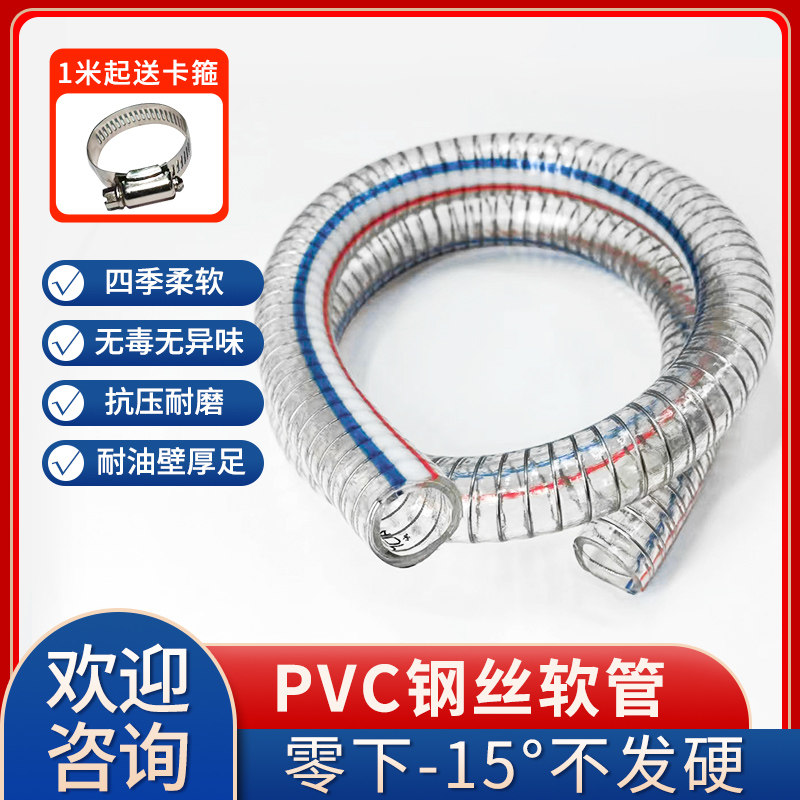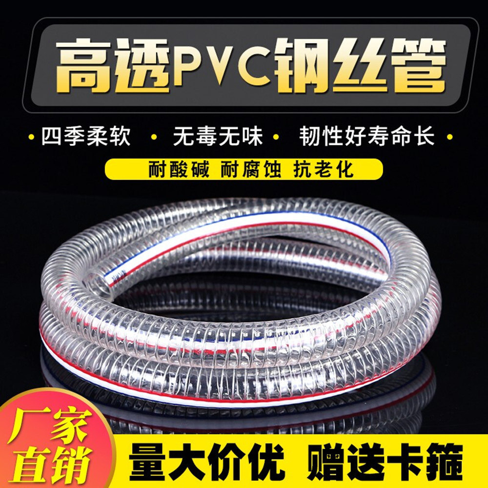 淘宝企业购官方旗舰店,pvc钢丝软管透明水管带钢丝加厚塑料管油管1/2/3寸6分25mm耐高温